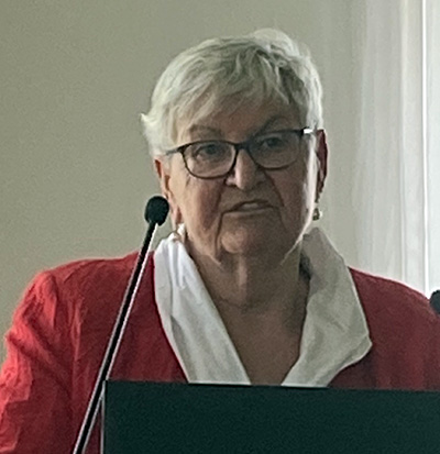 Kißlegg – Donnerstagnachmittag, 11. April, kurz nach 14.30 im Bankettsaal des Neuen Schlosses Kißlegg. Trotz vergleichsweise warmer Vorfrühlingssonne sorgen rund 80 meist nicht mehr ganz junge Besucherinnen und Besucher für einen rappelvollen Vortragsraum bei diesem Altennachmittag. Mitveranstalterin Margret Kehle (Bild) kündigt am Mikrofon freudig Dr. Eberhard Fritz als Redner an. Sein Thema: Geschichte der Eisenbahn/Geschichte der Eisenbahn in und um Kisslegg.
