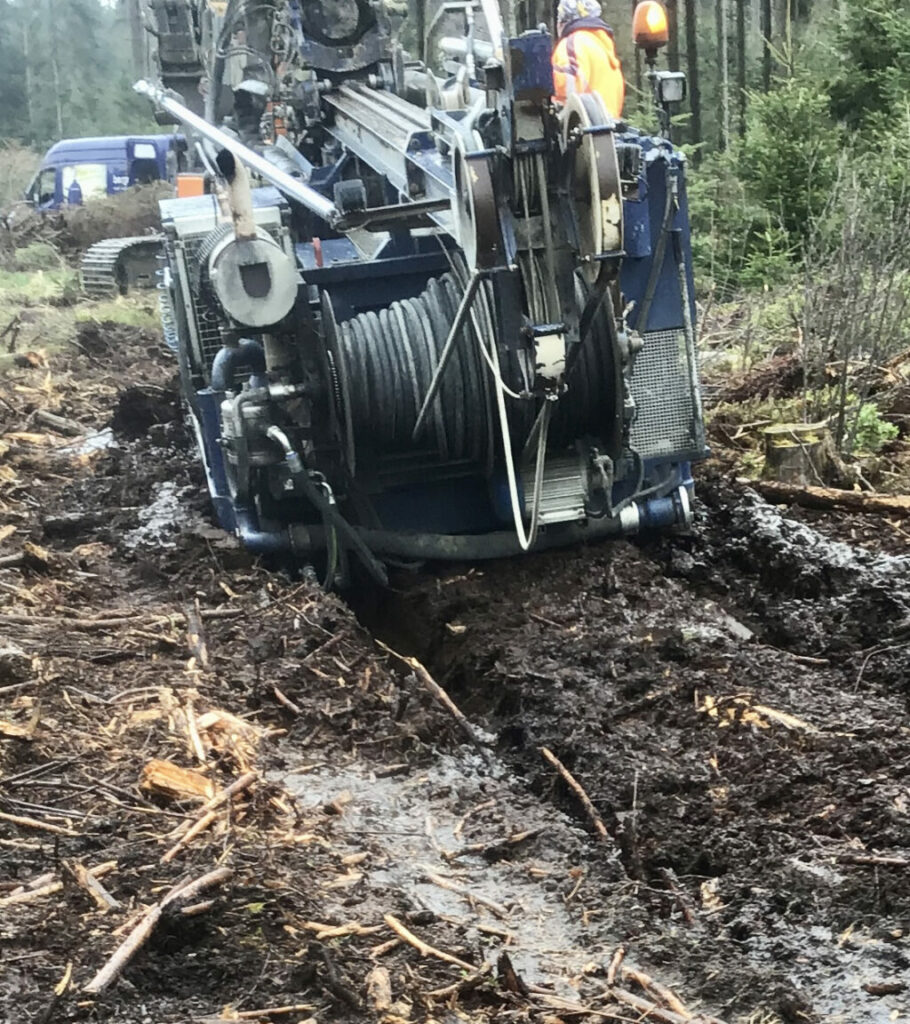 Der Boden im geplanten Windfeld im Bremberger Wald ist moorweich. Das Bohrgerät hat tiefe Furchen gezogen. Foto: BI