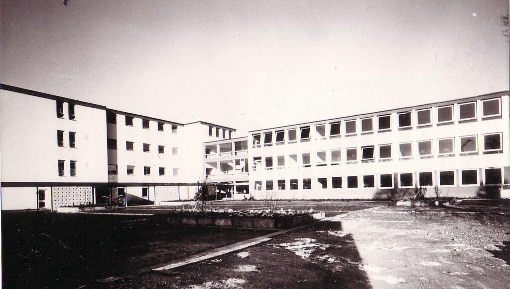 Ansicht der „Turnhallen-Seite“ (die alte Turnhalle war rechts von dem Zwischenbau am rechten Bildrand.