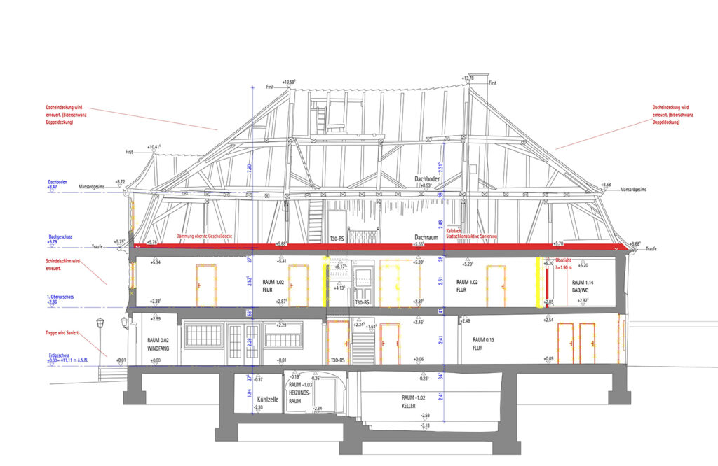 Längsschnitt Umbauplanung „Löwen“. Zeichnung: EUS Architekten