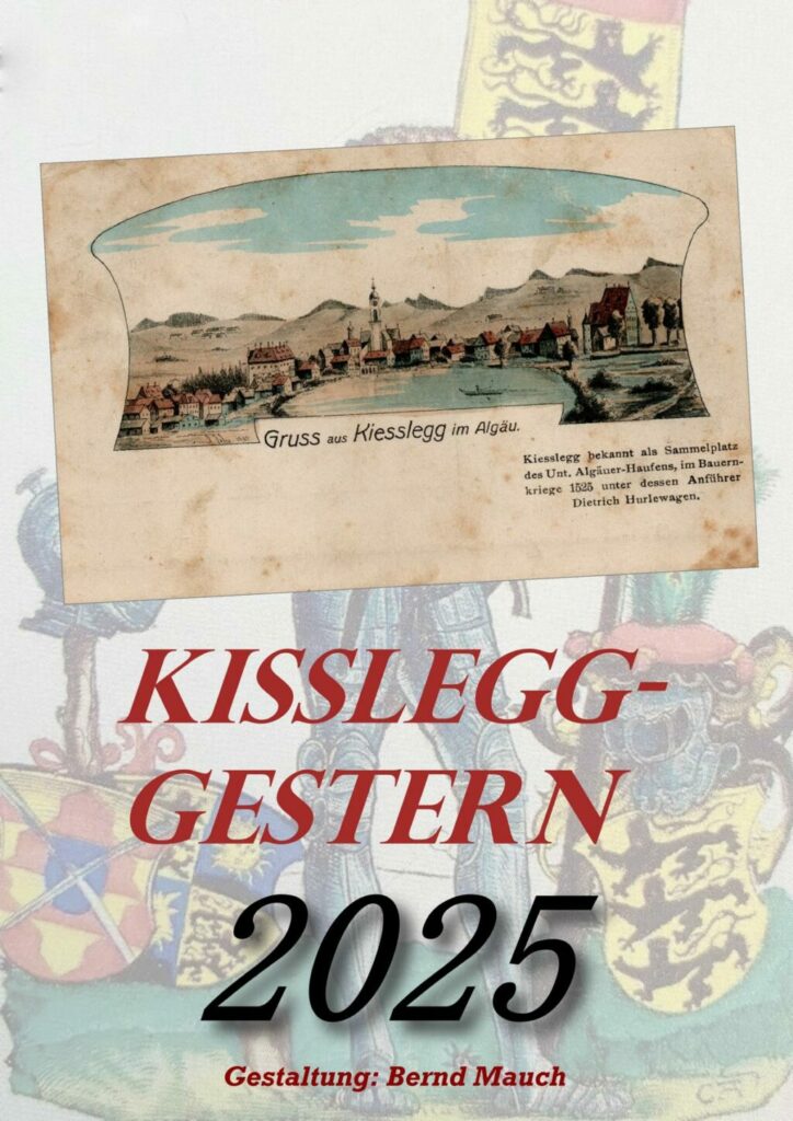 Kißlegg – Der neue Kalender von Bernd Mauch ist gedruckt und ab sofort bei Eisenwaren Martin, St. Anna-Str. 8, in Kißlegg sowie bei Bernd Mauch erhältlich. Der Ortsheimatpfleger hat wieder eine Serie von Ansichten von Alt-Kißlegg versammelt. Das Titelbild zeigt eine Ansichtskarte aus dem Jahr 1902 mit dem Panorama von Kißlegg und dem Verweis auf Kißleggs Rolle im Bauernkrieg vor 500 Jahren. Der Stückpreis liegt wieder bei 10,- Euro.