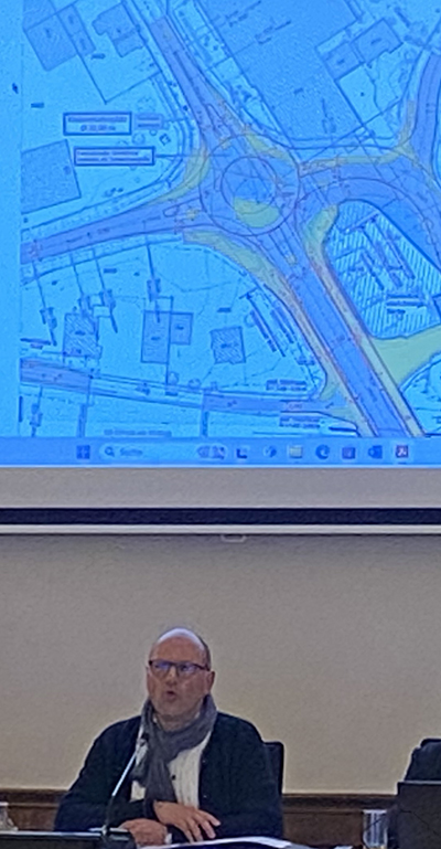 Bürgermeister Dieter Krattenmacher erklälrte am Mittwochabend im Gemeinderat, wie der neue Kreisverkehr nahe der OMIRA geplant ist. Foto: Julian Aicher