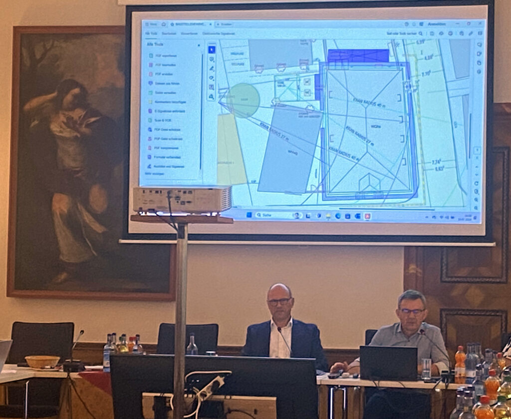 Betrifft: Brummis. „Ob die Radien für die LKW-Transporte eingehalten werden können, das wird noch verkehrsrechtlich zu prüfen sein“, erläutere Rommel. Er schloss daraus: „So wie das heute aussieht, gibt’s Einbahnverkehr.“ Und zwar ab dem Tag, an dem die Baustelle angelegt werde – etwa ab Mitte September 2024. Das heißt, dass „dann die Schlossstraße nur noch als Einbahn geführt werden kann“, fügte Bürgermeister Dieter Krattenmacher hinzu. Er teilte die Meinung von Gemeinderat Hubert Braun, dass „über die Parkstraße eigentlich sehr viel mehr Sicherheit“ herrsche.