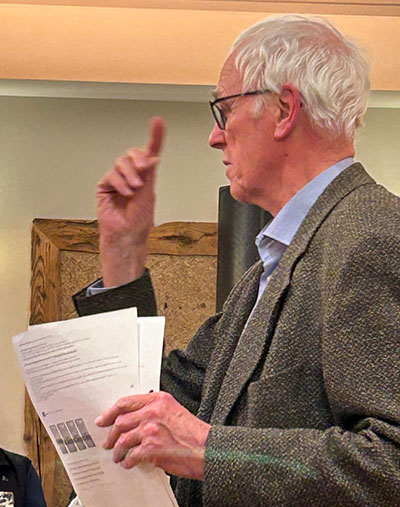 Diese Kraft zeige die BDW auch in Verhandlungen mit Behörden. Vize-Vorsitzender Dr. Friedrich Rockhoff (Bild) erwähnt dabei ein Treffen mit dem Landratsamt am 13. März 2025. Mit Landrat Harald Sievers sei vereinbart, dass keine Genehmigungsverfahren für Pflanzenkläranlagen im Kreis Ravensburg laufen ohne Beteiligung der BDW. Das bedeute freilich nicht, dass man immer einer Meinung sei, betont BDW-Häuptling Manfred Oswald. So habe der Vereinsvorstand beim Regionalverband Bodensee-Oberschwaben angefragt, ob und wenn ja wie die Brunnen ums Moor im Bremberger Wald (Markung Kißlegg) durch Windkraft-Bauten dort gefährdet seien. „Da wollen wir eine Antwort“, forderte Oswald und ergänzte: „Die kriegen wir hoffentlich noch.“