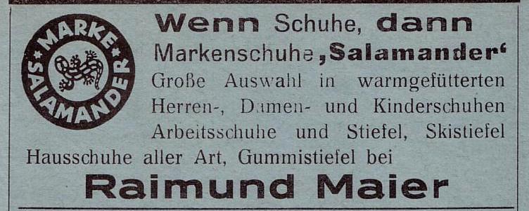 Bei Maier konnte man Schuhe kaufen und natürlich auch reparieren lassen. Ab 1896 wurde die Schuhmacherei von Dominikus Maier geführt, später umgebaut und seit den 50er-Jahren von Raimund Maier weitergeführt, bis 1966 Alois Paoli das Schuhgeschäft und die Schuhmacherwerkstatt übernahm und bis 1983 betrieb. Dann wurde das Haus abgebrochen und musste einem Neubau weichen, der bis zum heutigen Tag ein Versicherungsbüro und ein paar Wohnungen beinhaltet.