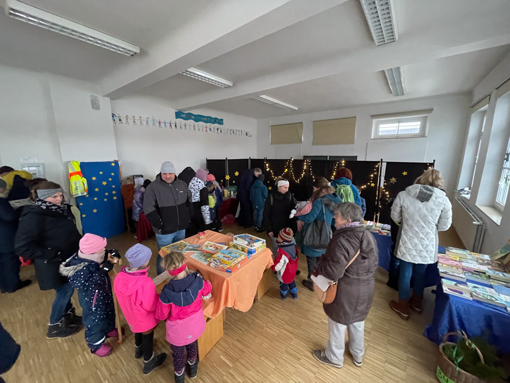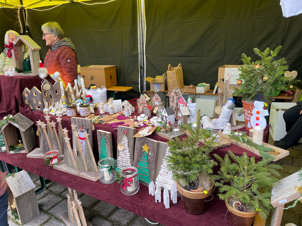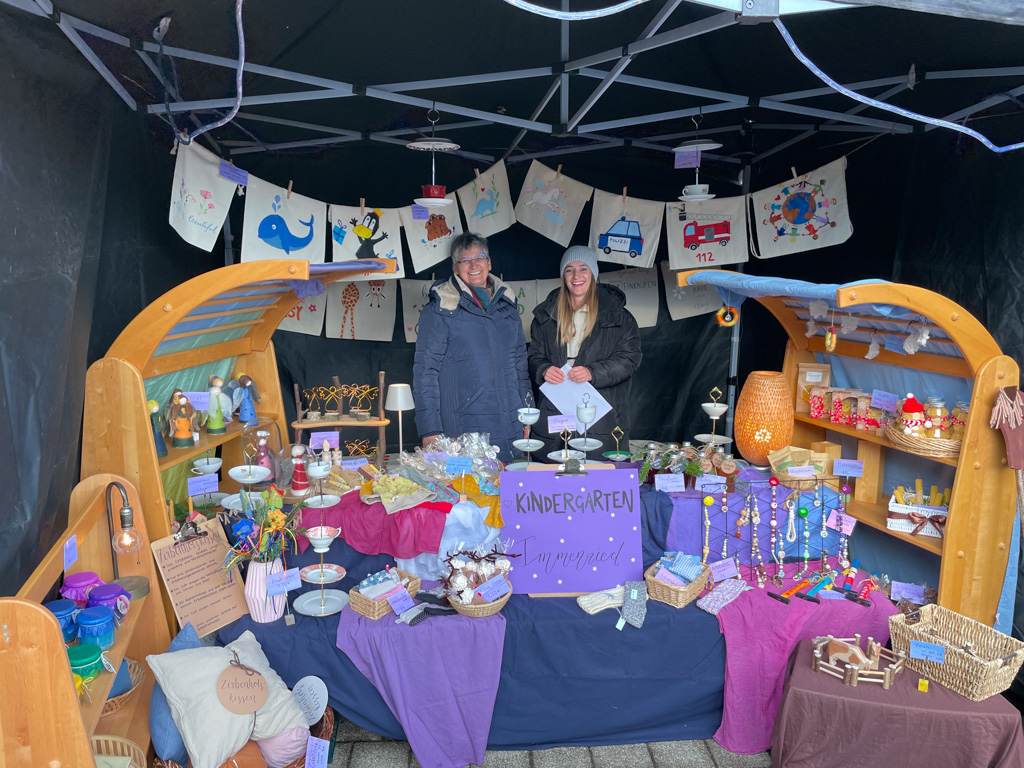 An zehn Ständen wurde Gebasteltes, Holzwaren, Gestricktes, Gebackenes, auch Christbäume und anderes mehr feilgeboten. Mit Narrenzunft, Schäferverein, Sportverein, Näh-, Strick- und Bastelgruppe waren auch einige Immenrieder Vereine vertreten. Die Organisatoren von Seiten des Fördervereins Kindergarten und Grundschule waren wiederum sehr zufrieden mit dem reibungslosen Ablauf und dem breitgefächerten Angebot.