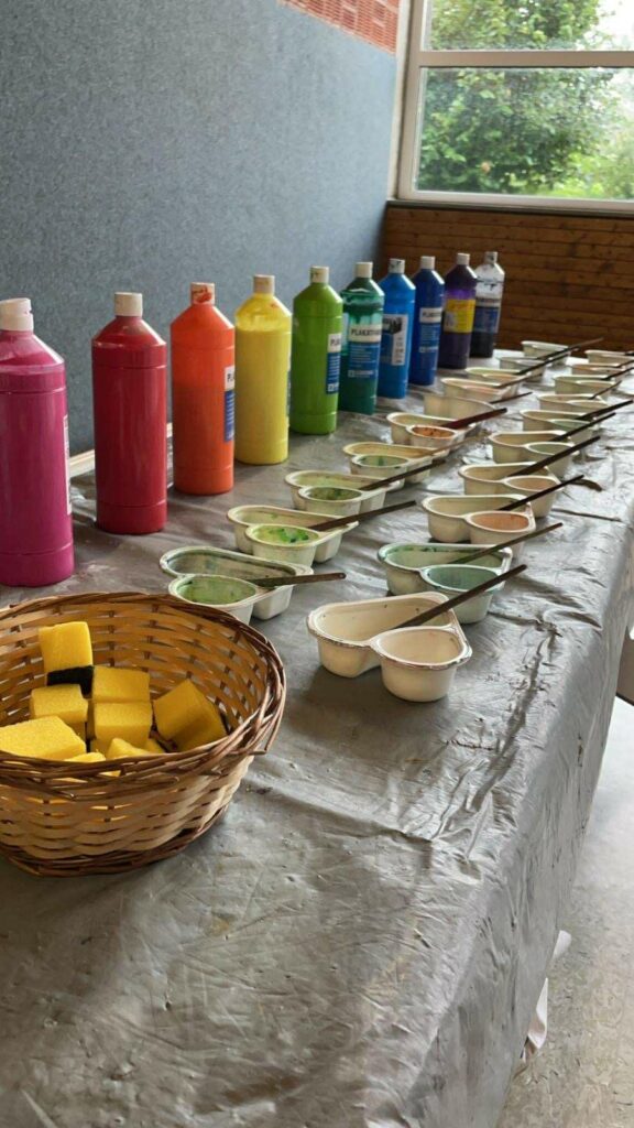 Im nächsten Schritt durften die Kinder ihre Cajon voller Fantasie mit Farben so gestalten, wie sie es mochten. Es kamen kunterbunte und kunstvolle Pappcajons zum Vorschein.