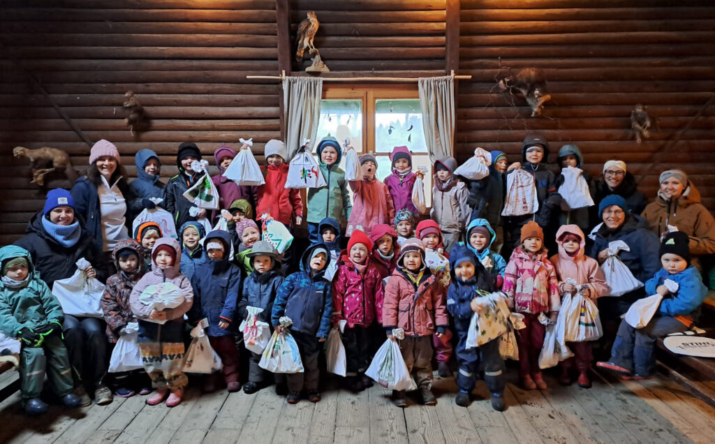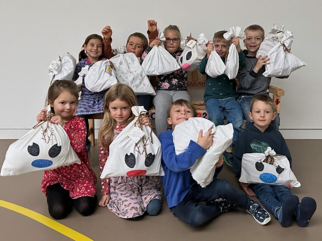 Die Kinder vom Naturkindergarten mit ihren Stofftaschen. Foto: Nicole Greber