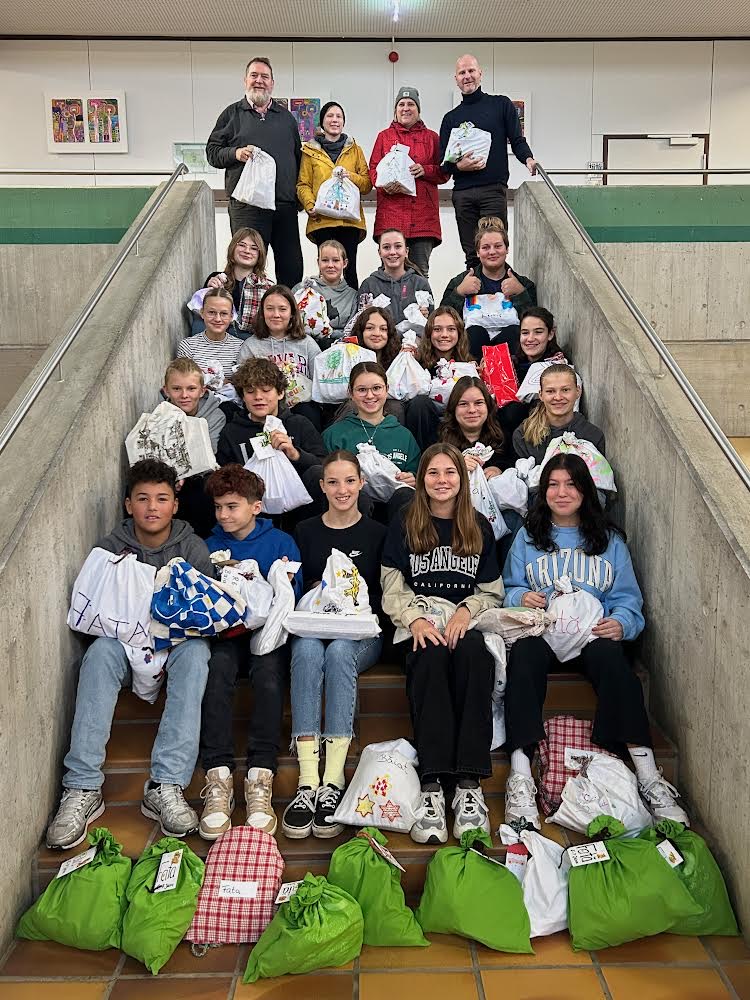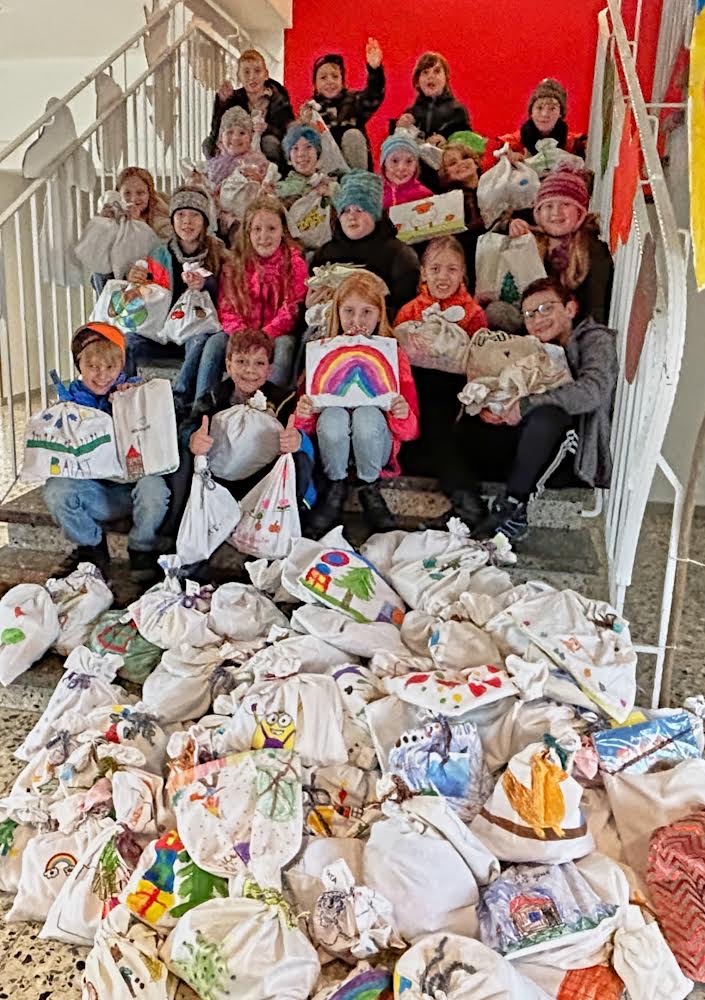 Kinder und Eltern haben Weihnachtssäckchen für Rumänien gefüllt
