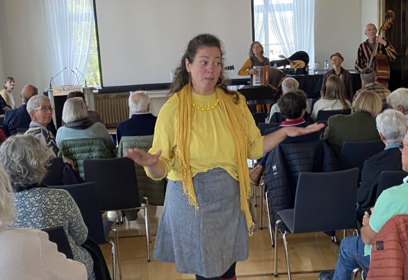 Kißlegg – Im Neuen Schloss Kisslegg fand am heutigen Sonntagnachmittag, (27.10.) die Finissage der Ausstellung „Zeiträume“ statt – hier mit Gesangseinlage von Moni Bothe. Bericht folgt. Foto: Julian Aicher
