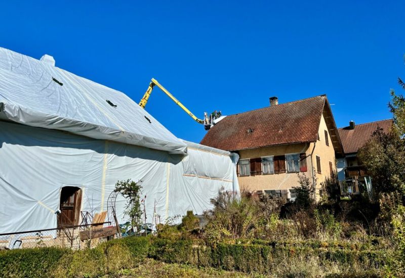 Kißlegg – Eines der ältesten und historisch geprägten Häuser in der Gemeinde Kißlegg, das Haus Walser in der Kirschmoosstraße 14, ist seit vom 28. Oktober verhüllt. Die Maßnahme dient der Bekämpfung holzzerstörender Schädlinge. Sie ist ein erster Schritt zur Erhaltung des denkmalgeschützten Hauses. Weitere Sanierungsmaßnahmen werden folgen.