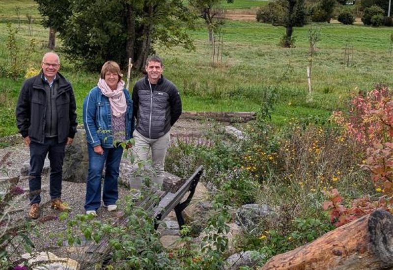 Ratzenried – Am 30. September wurde am Ortsrand von Ratzenried das „Mustergärtle“ offiziell eröffnet. Argenbühls Bürgermeister Roland Sauter, Silvia Ulrich, Vorstandsmitglied der Regionalentwicklung Württembergisches Allgäu e.V., und Geschäftsführer Bernd Kaufmann nahmen an der Eröffnung teil.