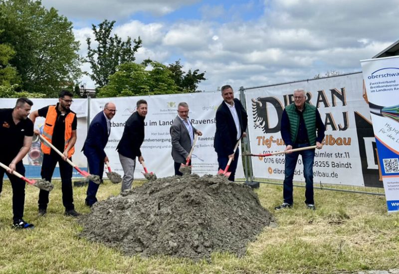 Kißlegg – Am 4. Juni fand der feierliche Spatenstich für den lang ersehnten Breitbandausbau in Kißlegg und Umgebung statt. Kißleggs Bürgermeister, Vertreter der Gemeinde, des Zweckverbandes Breitbandversorgung im Landkreis Ravensburg, des Ingenieurbüros Zimmermann und der Firma Dibran Dautaj Tief- und Kabelbau versammelten sich, um den Beginn dieses bedeutenden Infrastrukturprojekts zu würdigen.