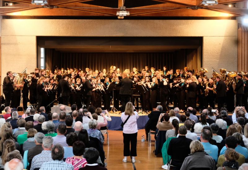 Vogt – Es war ein ganz besonderes Konzert, welches das Kreisverbandsjugendblasorchester (KVJBO) des Landkreises Ravensburg in der Sirgensteinhalle in Vogt den vielen Zuhörern bot. Denn gemeinsam mit der aktuellen Besetzung traten an diesem Sonntagabend viele ehemalige Ensemble-Mitglieder der letzten vier Jahrzehnte unter dem Dirigat der fünf ehemaligen Dirigenten auf.