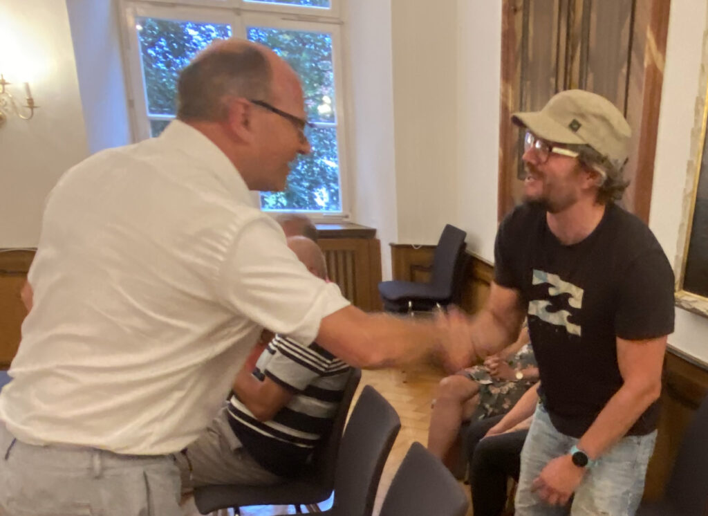 Es ist hier ein Wunder geschehen.“ Hörbar begeistert berichtete Bürgermeister Krattenmacher von einer gelungenen Lebensrettung. Wo, wann und durch wen? Am 29. Juni gegen 18.00 Uhr hörte ein älterer Badegast am Obersee mehr oder minder plötzlich auf zu schwimmen. Grund: ein Schwächeanfall. Diejenigen am Strandbad Obersee, die sich mit Rettung auskannten, eilten zu dem beinahe Ertrinkenden. „Sie haben alles richtig gemacht“, lobte der Bürgermeister die Rettungsbeteiligten. Die sechs Personen waren während der Gemeinderatssitzung hinteren Saal-Bereich anwesend.