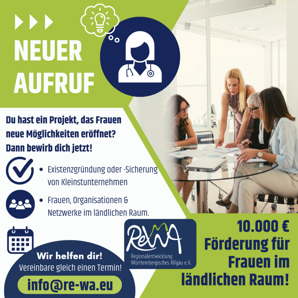 Kisslegg – Für das Jahr 2025 können Frauen, Netzwerke und Organisationen bis zum 16. März 2025 ihre Projektanträge bei der LEADER-Geschäftsstelle in Kißlegg einreichen.
