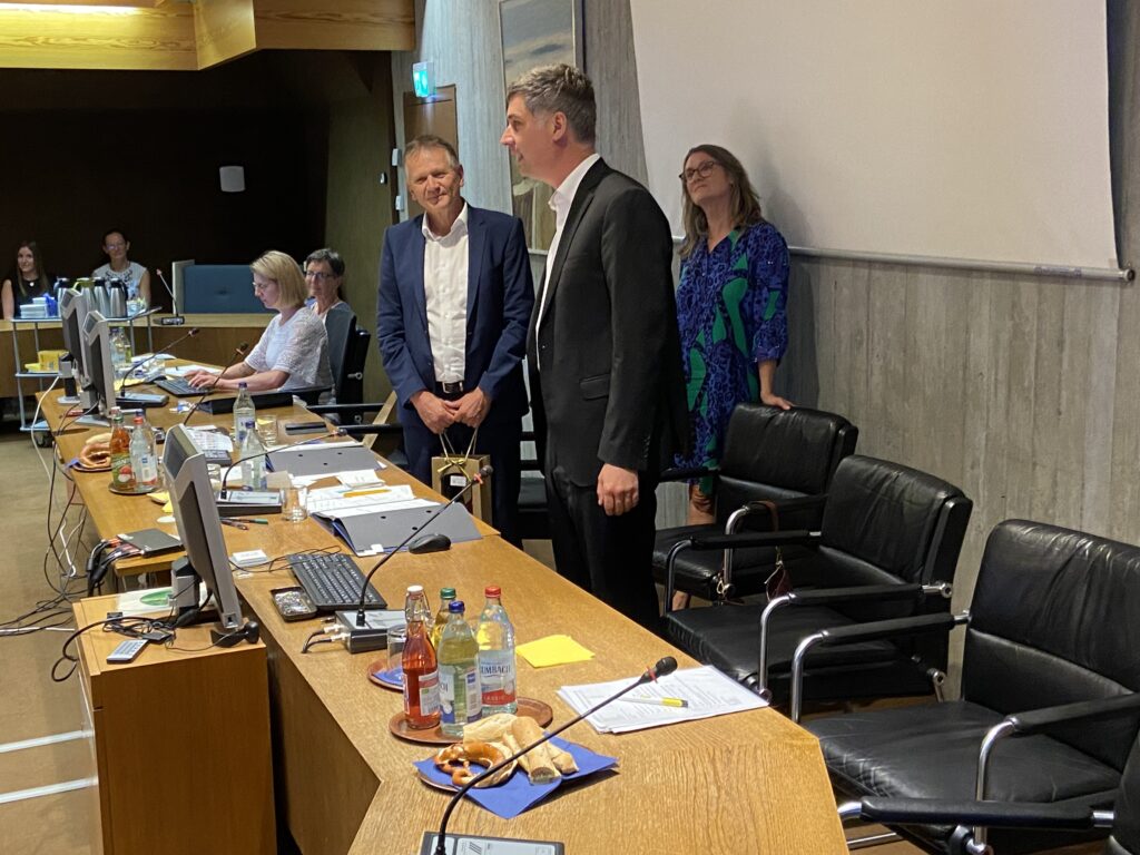 Daniel Gallasch bedankt sich stehend bei den Gemeinderäten für das einstimmige Votum. Foto: Julian Aicher