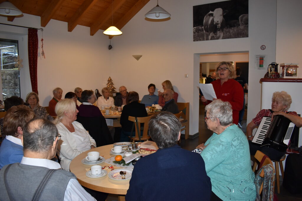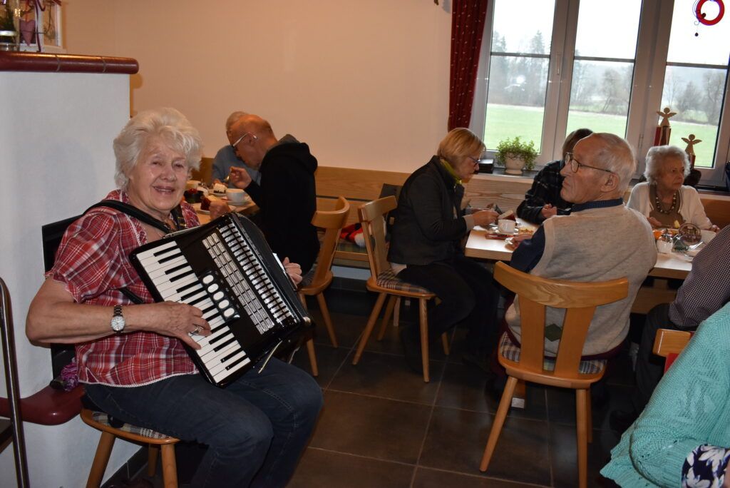 Ingrid Menig mit Team vom DRK Wangen begrüßte alle aufs Herzlichste und führte durch das besinnliche Nachmittagsprogramm. Schöne Gedichte, kleine Geschichten und natürlich gemeinsames Singen waren obligatorisch und stimmte auf den Advent ein. Else Maischberger aus Leutkirch unterhielt und begleitete am Akkordeon den bunten Adventsnachmittag, an dem auch viel Zeit für Gespräche und Unterhaltung war. Die flotten Alphornbläser, inklusive Ingrid Menig, überraschten nochmals mit einigen schönen Melodien. Es folgte ein kleines Quiz und mit schönen Klängen gingen die gemeinsamen Stunden schnell vorüber.