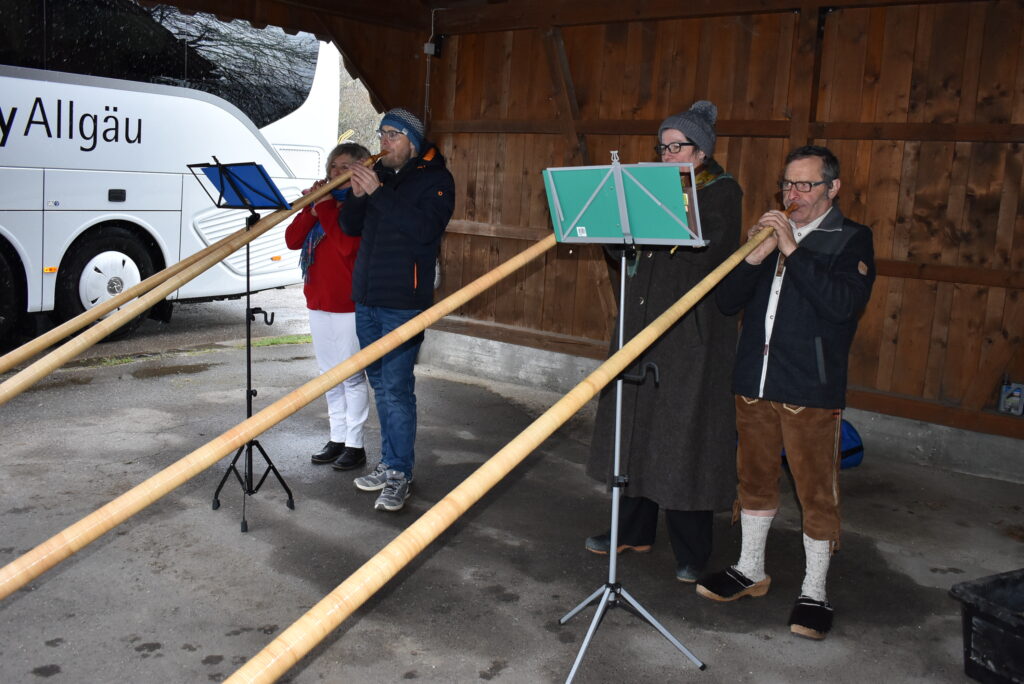 Leutkirch / Wangen – Das DRK Wangen-Leutkirch veranstaltete einen besinnlicher Adventsnachmittag für die Senioren des DRK-Betreute-Reisen-Teams. Man traf sich in Dengeltshofen. Einige Alphornbläser begrüßten die mit einem Schüle-Bus und Fahrer Gustl angereisten Senioren zum DRK-Adventsnachmittag beim Fuchsbauer in Dengeltshofen schon im Freien.