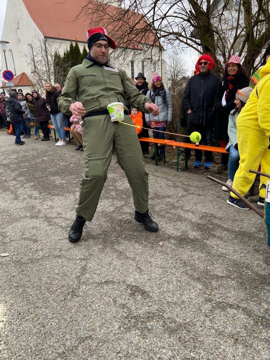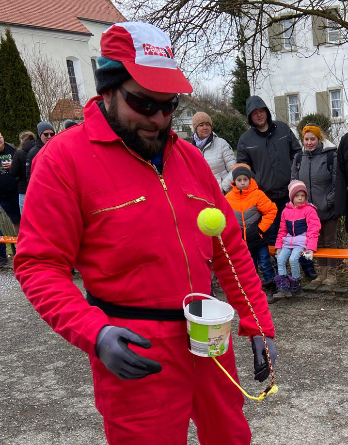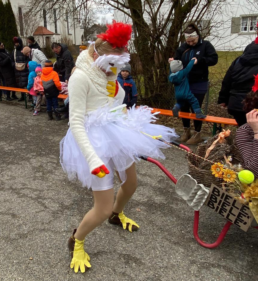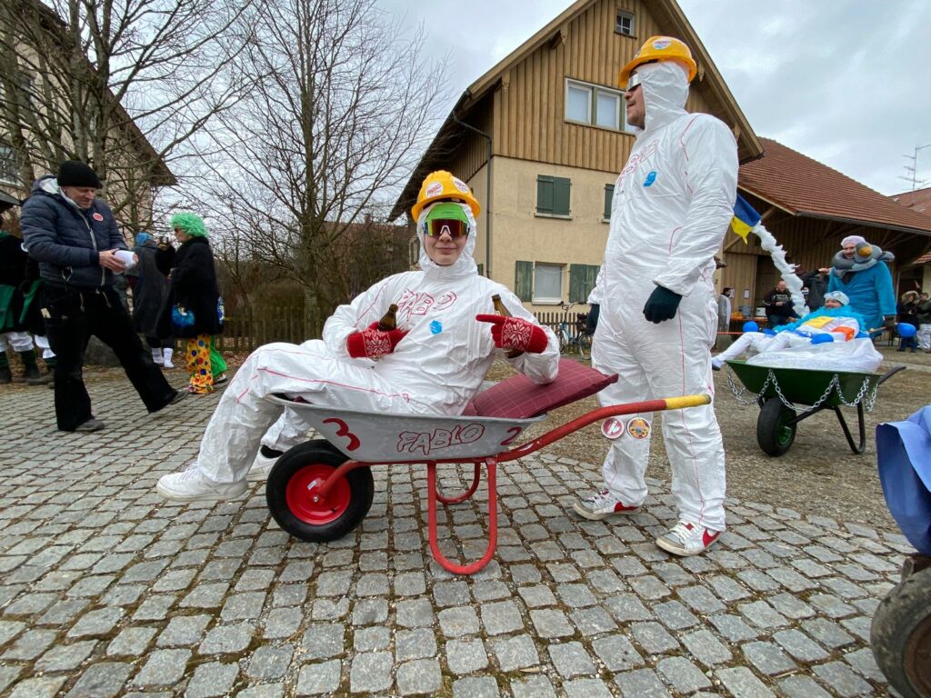 Urlau – „Schieb“, so lautete das Fasnets-Motto am Samstagnachmittag, 1. März, ab 13.30 Uhr in Urlau zwischen Kirche und Genussmanufaktur. Dabei setzten sich 15 Gefährte in Bewegung. Da war „Hüftschwung“ gefragt. Denn die Fahrerinnen und Fahrer mussten an einem Streckenabschnitt Halt machen; dort bekamen sie um den Gürtelpunkt einen kleinen Becher gebunden – samt Schnur und einem Tennisball dran. Diesen Ball galt es dann mit Hüftschwung in den Becher zu bugsieren. Kurz: „Das Runde musste ins Runde.“ Das sorgte für Bewegung – und für Erheiterung der Narretei-Begeisterten entlang der Straße. Unser Reporter Julian Aicher hat das Urlauer „Schubkarra-Schieba“ mit obligatorischem Hüftschwung fotografiert. Nachstehend die Bilder.