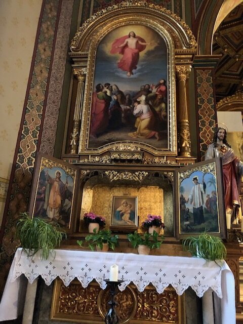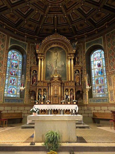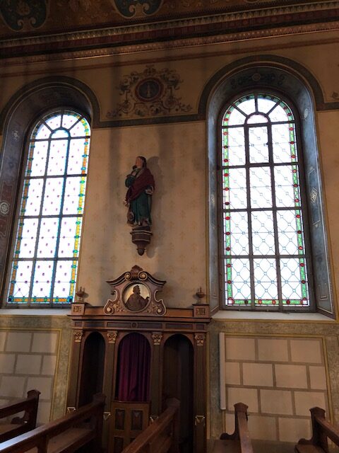 Die illustre Runde erfuhr am Dienstagnachmittag, warum Architektin Cornalie Welte glaubt, dass die mit Rosenkranz-Motiven bemalten Chorfenster „früher wahrscheinlich Spickzettel“ fürs Beten waren. Und manch älteres Vereinsmitglied erkannte bei sich durchaus noch gottesdienstliche Fähigkeiten. So stand Altlandrat Kurt Widmaier mehrere – lange – Minuten hinter dem Altar – Blickrichtung Kirchenbänke. Wirkte fast wie ein Zelebrant. Auf die schmunzelnd vorgetragene Frage des Bildschirmzeitung-Reporters, ob Widmaier gleich noch eine Messe feiern wollte, lächelte dieser – und gestand: „Als Kind habe ich Pfarrer gespielt.“