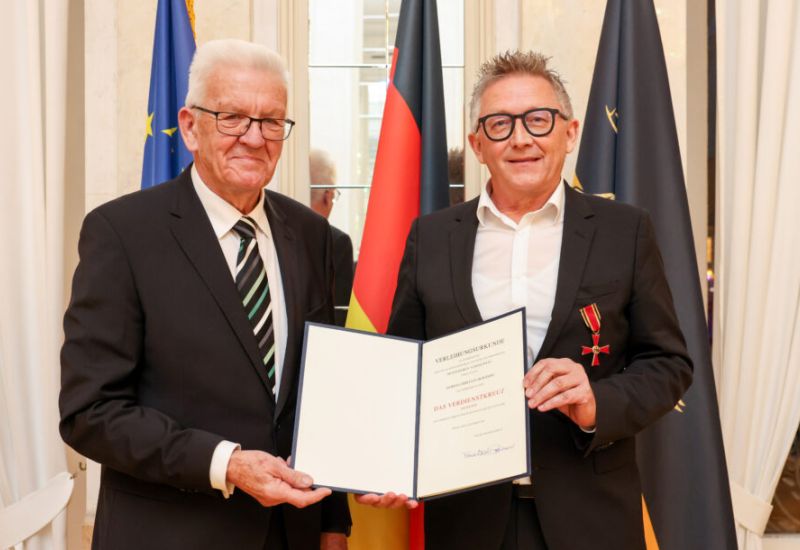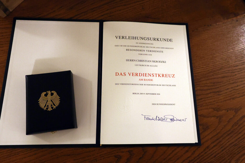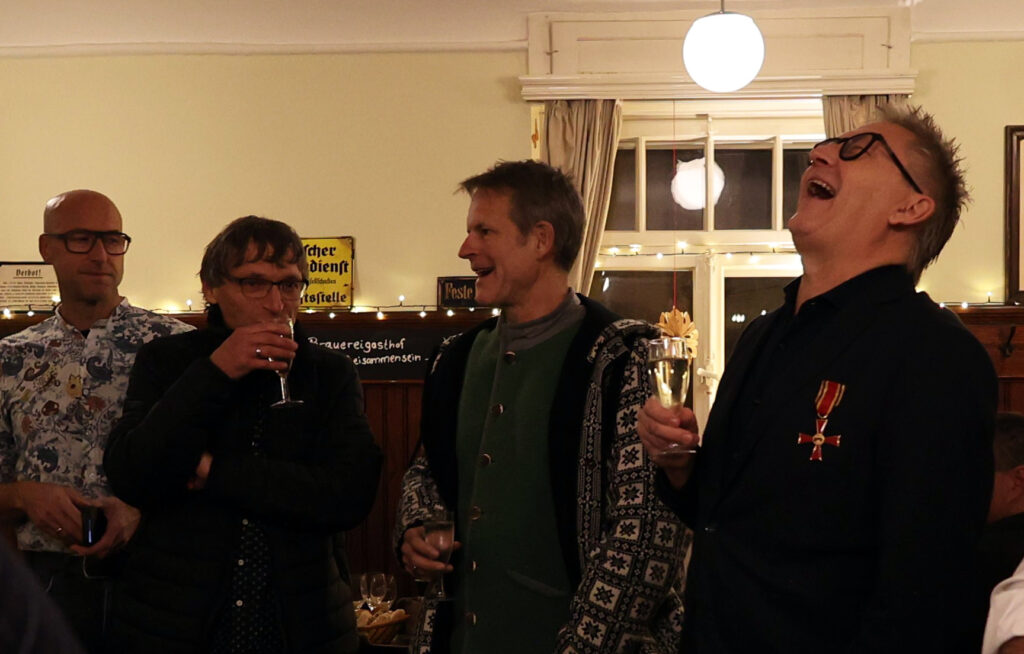 Urlau – Am vergangenen Freitag (6.12.) bekam Christian Skrodzki in Stuttgart das Bundesverdienstkreuz verliehen. Überreicht wurde es ihm im Neuen Schloss von Ministerpräsident Winfried Kretschmann im Auftrag des Bundespräsidenten. Am Sonntag feierte der Geehrte im Kreise von Freunden, Weggefährten und mit der Familie in „seinem“ Hirsch in Urlau. Für die Bildschirmzeitung „Der Leutkircher“ war Hans Reichert als Reporter dabei. Mit Erlaubnis der Anwesenden durfte er in diesem geschlossenen Kreis fotografieren. Gerne berichten wir in Wort und Bild im „Leutkircher“ über das Fest und nutzen hiermit auch die Gelegenheit, dem hochkreativen Macher zu gratulieren. Was Christian Skrodzki alles geleistet hat – mit einem Team; dass das erwähnt wird, darauf legt er größten Wert – haben wir in einem ausführlichen Interview dargestellt (siehe „Lesen Sie hierzu auch …“ am Ende dieses Artikels).
