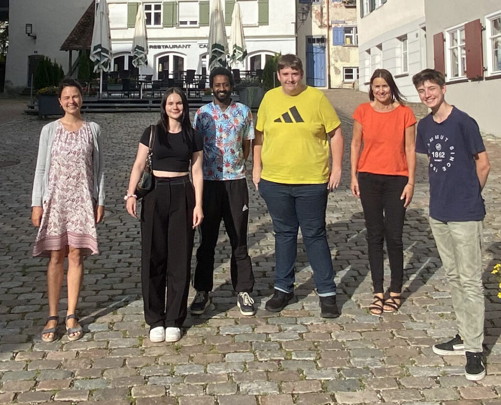 Jugend-Gemeinderatsaktive am 23. Juli auf dem Gänsbühl Leutkirch (von links): Maria Hönig von „Demokratie leben!“, Melissa Altergott (stellvertretende Vorsitzende), Wdebat Arazar vom Jugendhaus, Luis Kistler, Carmen Scheich (Stadt) und Constantin Künst (neuer Vorsitzender).