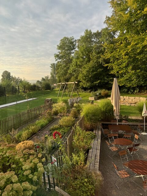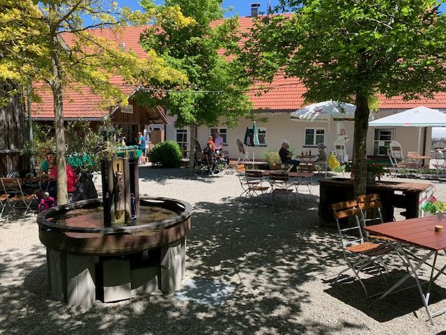 Außerdem lädt das nahe Eschach-Ufer direkt am Gartenrand zum Ausruhen. Oder auch zum Hinschauen für Kunst-Beflissene. Damit nicht genug, lockt in direkter Nachbarschaft ein Laden mit Kinderkleidung, Naturkosmetik und Kerzen. Und selbst „Mystery package“-Begeisterte entdecken nahe des „Rössles“ den passenden Automaten ebenso wie einen Automaten mit Bio-Produkten der Käsküche Isny.