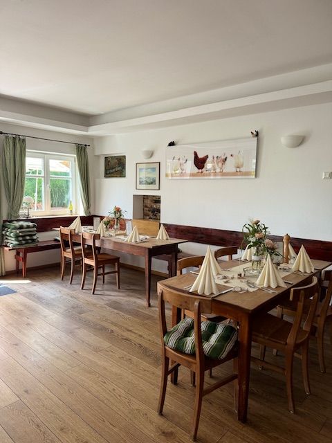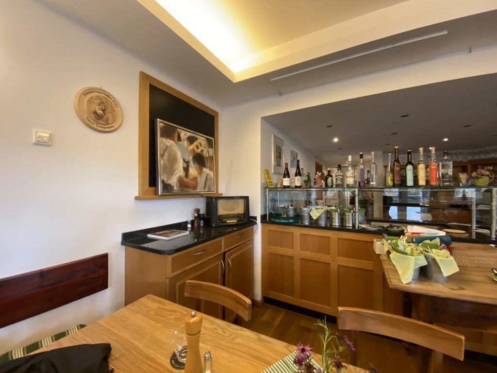 Direkt an der Straße Leutkirch – Isny. Gegenüber einer Bushaltestelle. Und erreichbar auch über den Fahrradweg Leutkirch-Urlau. Sowohl ein großer Parkplatz als auch eine Elektro-Ladestelle bieten hier Halt. Drinnen ein vielseitiger Eindruck. Die Inneneinrichtung regt zur Frage an, ob die gemütliche Gaststube alt oder neu ist. Beides. Denn Familie Pferdt hatte das Wirtshaus 2006 gekauft. Zuvor war es gut 20 Jahre lang leer gestanden, erzählt Wirtin Milena Pferdt. Danach versuchten die Pferdts, die alte Gaststube „so gut wie möglich zu erhalten“. Und doch auch zu erweitern. „Nicht so hartkantig“, aber mit Platz. So fanden auch die neuen Toiletten innerhalb des Gebäudes Raum. Vor 25 Jahren musste noch nach draußen, wer das „stille Örtchen“ erreichen wollte.