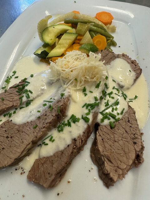 Haselburg – Ein Cordon bleu – besonders schmackhaft. An was liegt’s? Im „Rössle“ in Haselburg bei Urlau am echten Rinder-Rauchfleisch. Das „Rössle“ bezieht diese Gaumenkitzler von der „Allgäu-Metzgerei“ Arnold Heim in Ratzenried. Auch sonst ist der alten und neu erweckten Gaststätte „wichtig, dass wir regional oder bio haben“. So Wirtin Milena Pferdt. Die zweifache Mutter betreibt das „Rössle“ seit 2009 zusammen mit ihrem Mann Thomas, ihren Eltern Christine und Manfred samt treuen helfenden Händen.