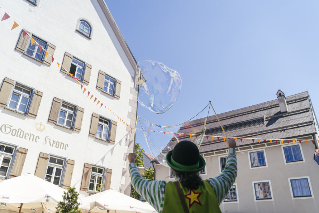 Das „Schmecktakel“ wird nicht nur durch kulinarische Genüsse geprägt, sondern auch durch ein vielfältiges Unterhaltungsprogramm für die ganze Familie. Handgemachte Musik, Straßenkünstler und Schausteller sorgen für eine ausgelassene Stimmung. Während die einen sich durch die Köstlichkeiten probieren, können die anderen sich von der faszinierenden Kombination aus Hochrad-Performance, Riesenseifenblasen, Ballonentertainment und Shows verzaubern lassen. Auch die kleinen Gäste können sich bei der Hüpfburg und am Kinderkarussell austoben.