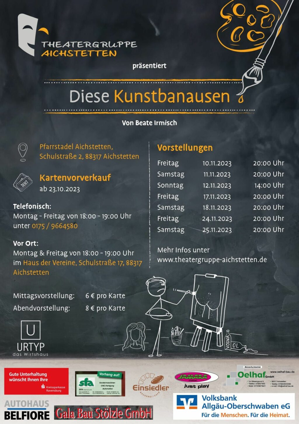 Das Stück „Die Kunstbanausen“ wird in Aichstetten gezeigt an folgenden Tagen: