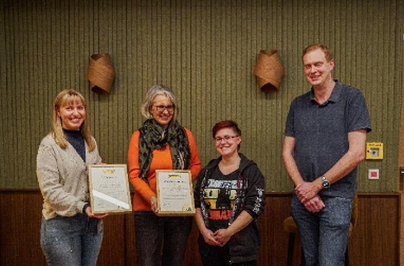 Die Ehrung für besonders gute Ausbildungsleistungen. (von links nach rechts), Michaela Knecht aus der Personalabteilung, Geschäftsführerin Margarethe Epple, ausgelernte Auszubildende Mona Jaklin und