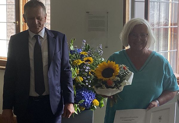 Monika Heinz – mit Blumen (25 Jahre im Gemeinderat)