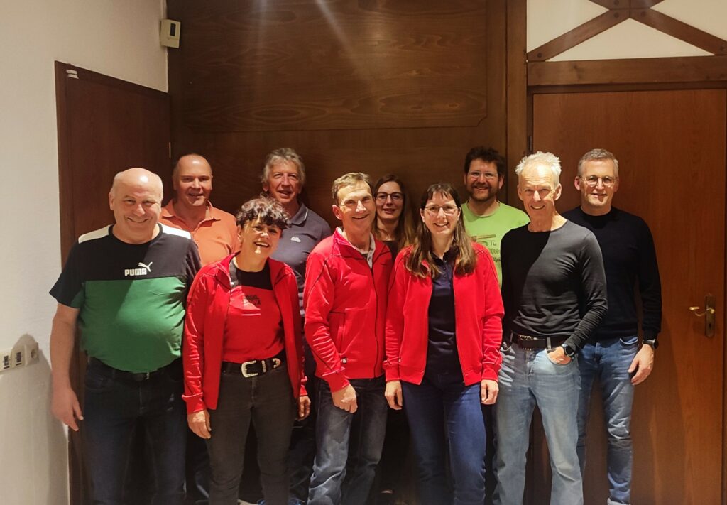 „Starker fröhlicher Auftritt – das neue, alte Team!“ (v.r.n.l.) Werner Vollmer, Werner Utz, Manne Heinz, Andrea Maurus, Julia Lang, Raimund Maurus, Gerhard Butscher, Simone Walter, Karl Roth und Franz Dorn