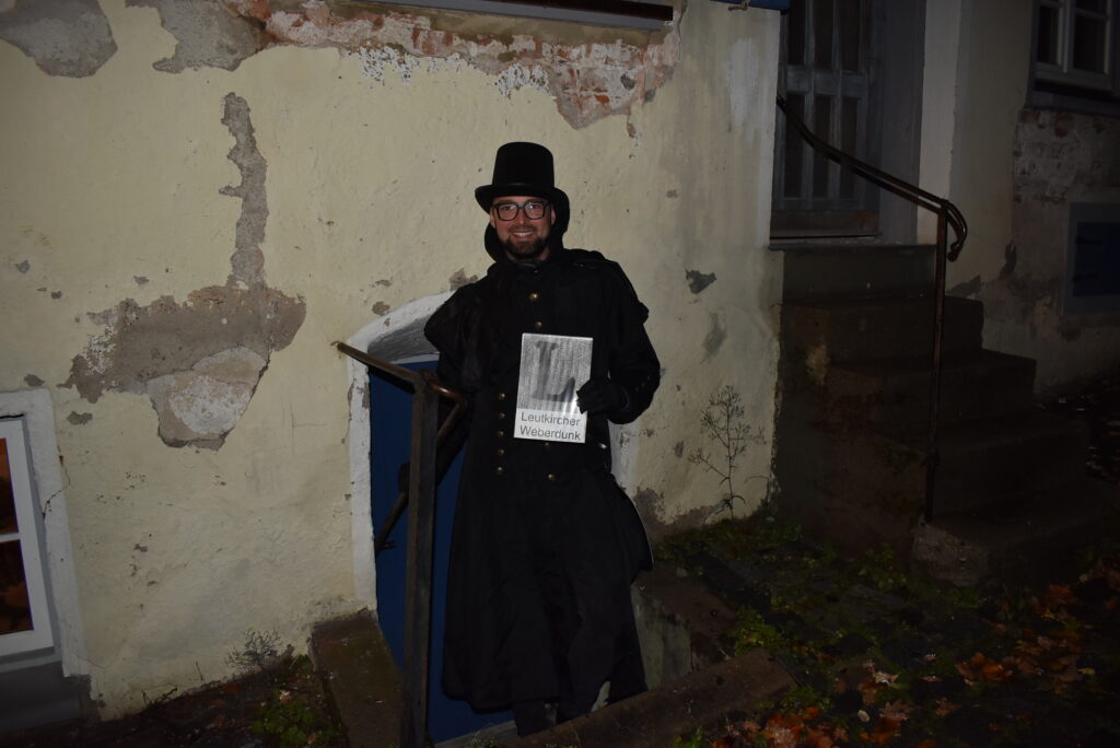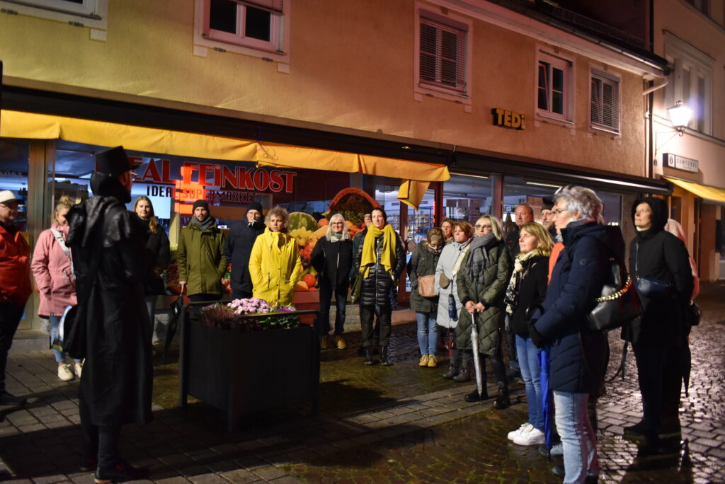 Leutkirch – Ein Feuer lodert im Hof hinter dem Gotischen Haus. Stadtführer Stephan Wandinger erwartet hier, im Kostüm von Jack the Ripper, seine Gäste zur nächtlichen Stunde. Im Feuerschein treffen immer mehr Interessierte ein, denn die Nachfrage für diese Halloween-Führung war groß.