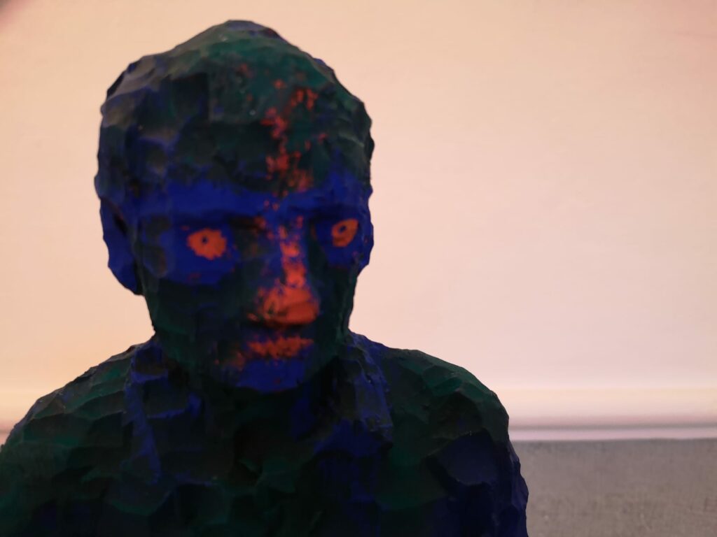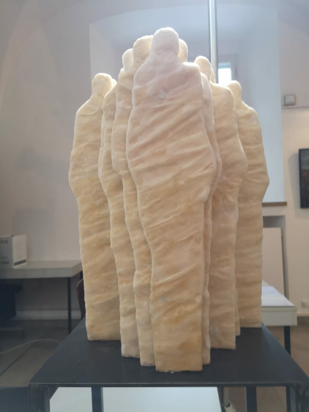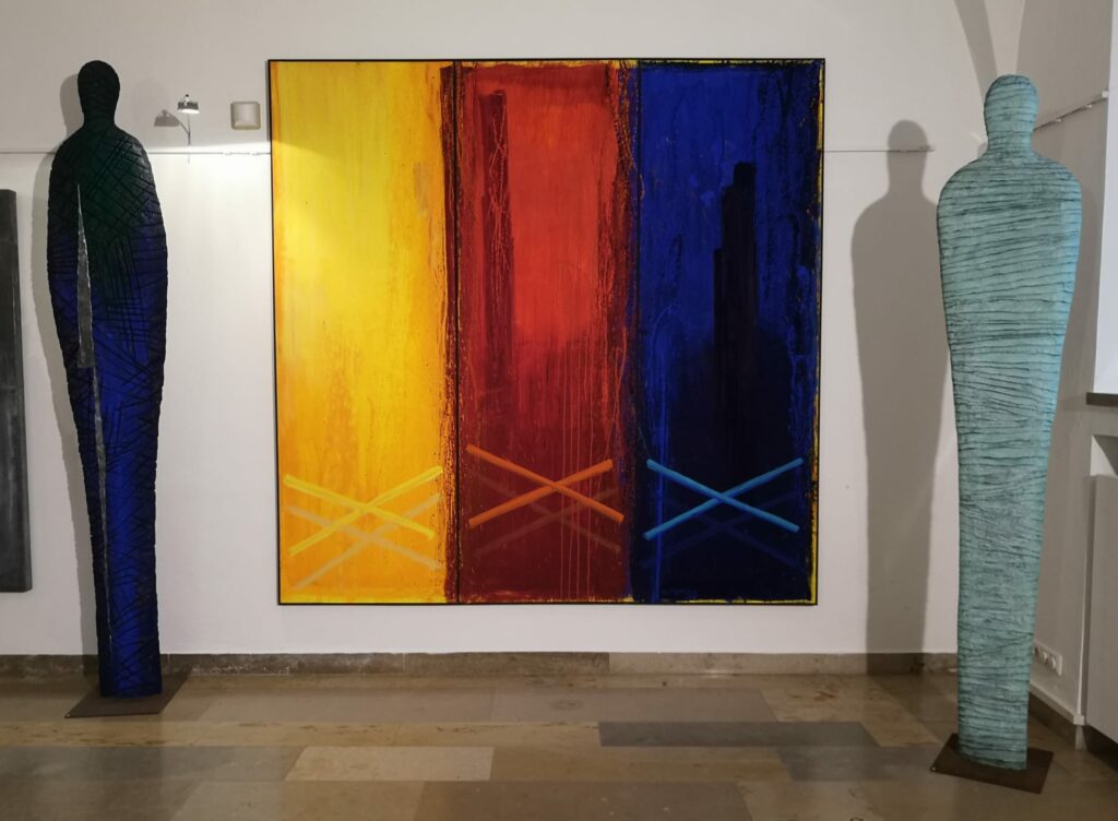 Andere kennen vielleicht Erwin Roth tatsächlich als bildenden Künstler, aber eventuell ausschließlich durch seine monumentalen Außenplastiken. In Leutkirch markiert zum Beispiel seine fünf Meter hohe Skulptur „Grande Dame“ aus rostendem Stahl eindrucksvoll das Entree zur Altstadt. Die Ausstellung in Kempten bietet nun die Gelegenheit, sich ein breiteres Bild davon zu machen, was Erwin Roth als freischaffender Bildhauer und Maler im stillen Ausnanger Atelier geschaffen hat. Befragt, wann denn das alles entstanden ist, während er in der Leutkircher Stadtpfarrkirche, in den Kirchen von Herlazhofen und Diepoldshofen und in Dutzenden anderen Kirchen des Allgäus als Restaurator gearbeitet hat, gibt Erwin Roth strahlend Auskunft. Wenn früher die Kinder im Bett waren und andere es sich dann eben vor dem Fernseher gemütlich einrichteten, ging er in sein Atelier und machte sich an die Arbeit.