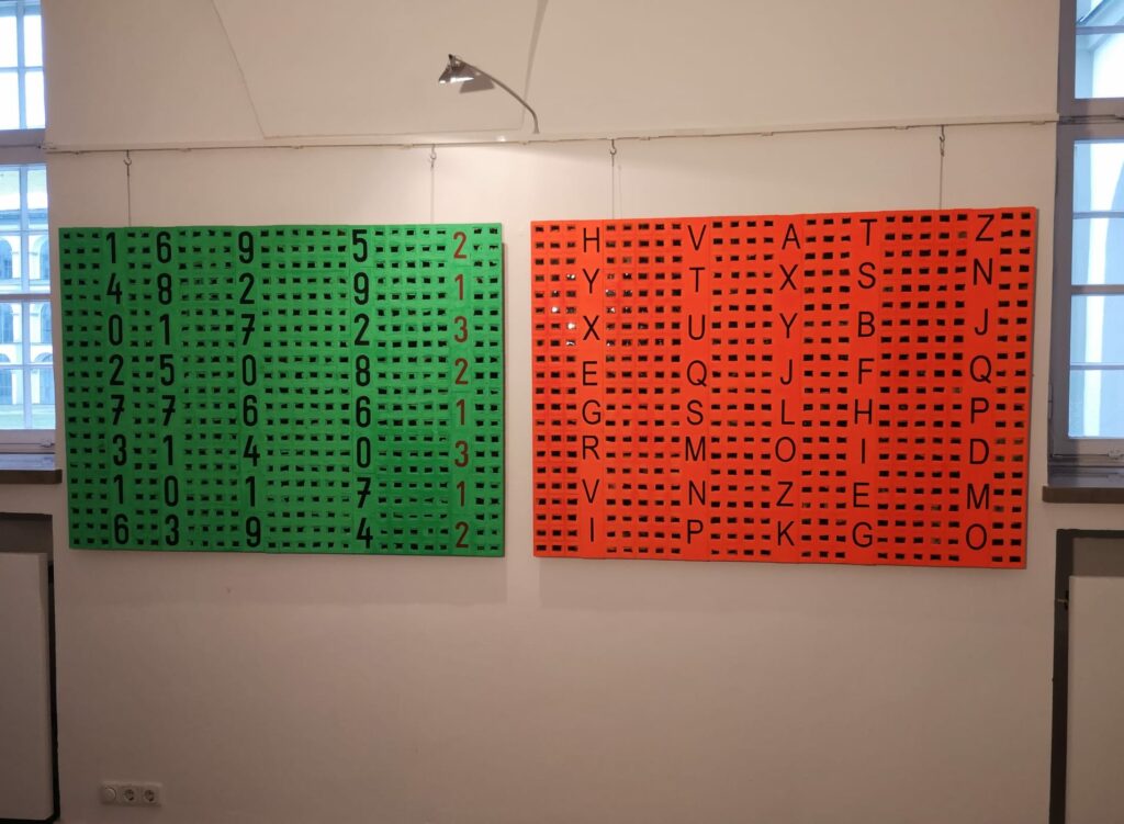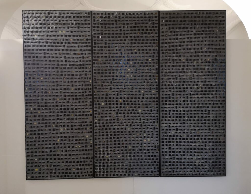 Der Künstler lässt sich auch von gesammelten oder gefundenen Objekten inspirieren. Beispiele hierfür sind die Arbeiten „Protokoll“ und „Lebensspuren“, die überhaupt zu den Höhepunkten der Ausstellung gehören. In „Protokoll“ öffnen sich in einem Triptychon aus Blechtafeln hunderte kleine Fenster und geben den Blick frei auf dunkle Diapositive, die beim Restaurieren entstanden sind. Hier ein Putto, dort ein Weihekreuz oder ein gegeiselter Heiland – hier wird aber nicht nur Bilanz der geleisteten Arbeit gezogen. Alles fügt sich zusammen zu einem zum Teil rätselhaften Panorama der Formen und Gestalten.
