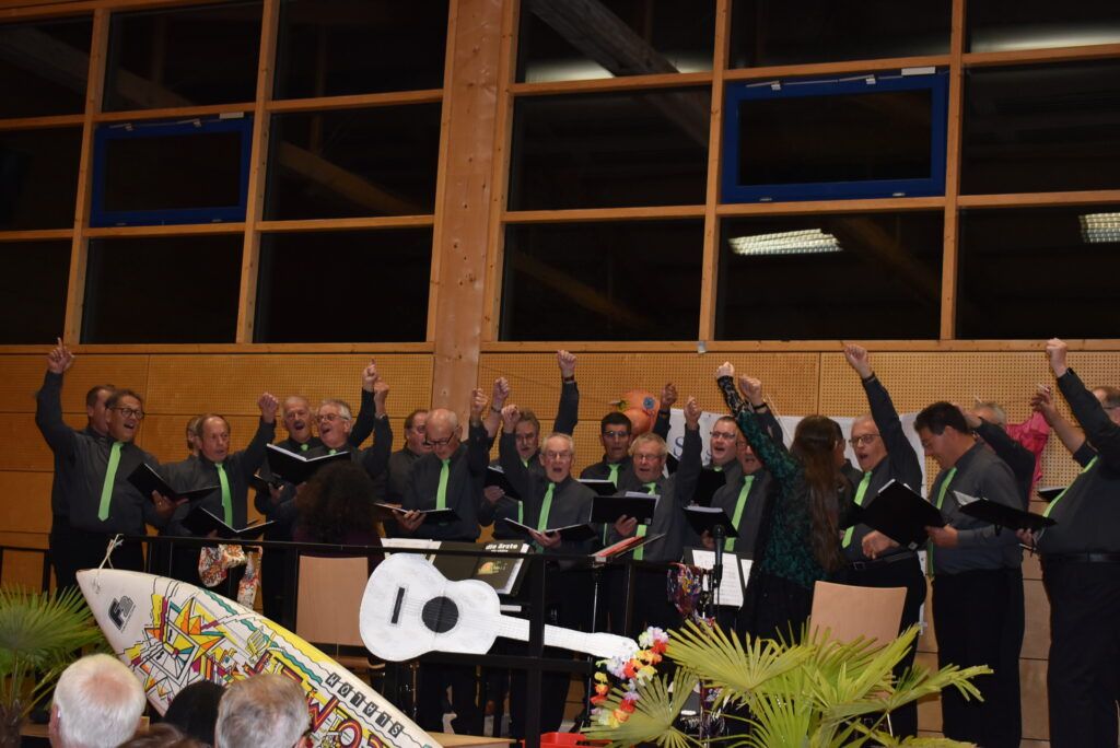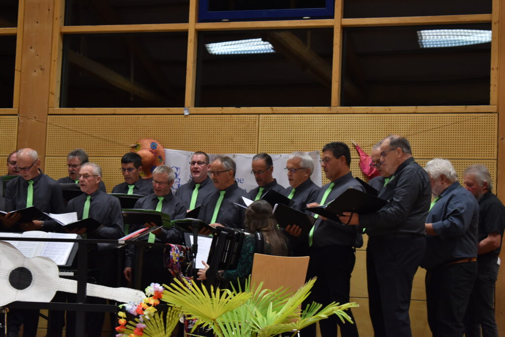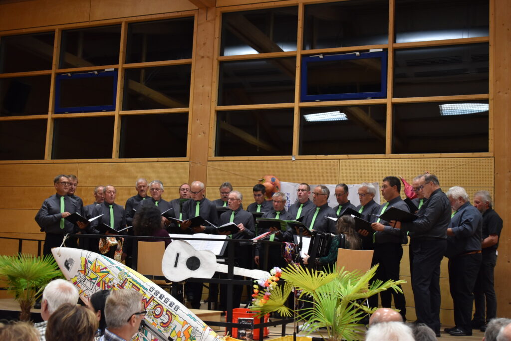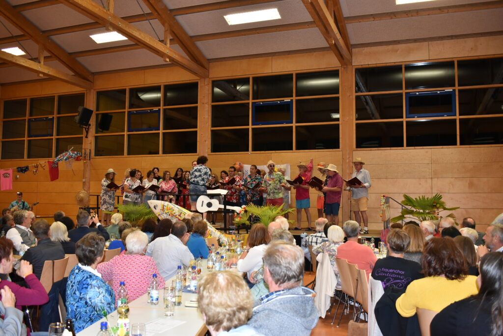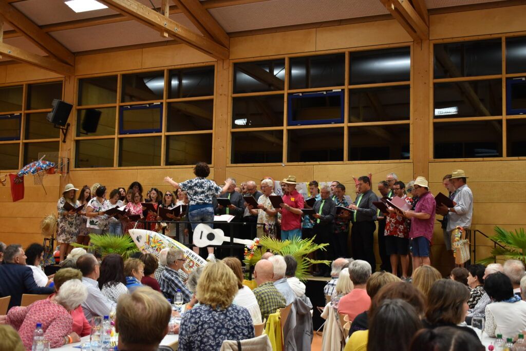 Zuletzt reihte sich der Männerchor zwischen die Sängergruppe und gemeinsam ertönte das schöne Lied „Als Freunde kamen wir, als Freunde gehen wir“ zum Abschluss. Dann übernahm DJ Franzi das Ruder des „Urlaubsbootes“, die Bar füllte sich und man verbrachte noch manch schöne Stunde in der Turn- und Festhalle Gebrazhofen.