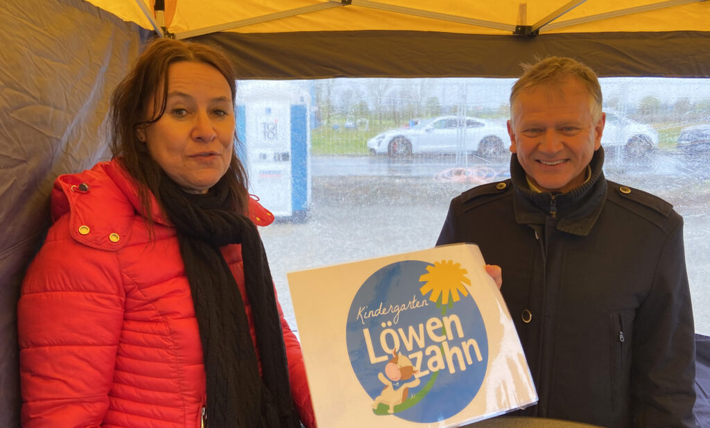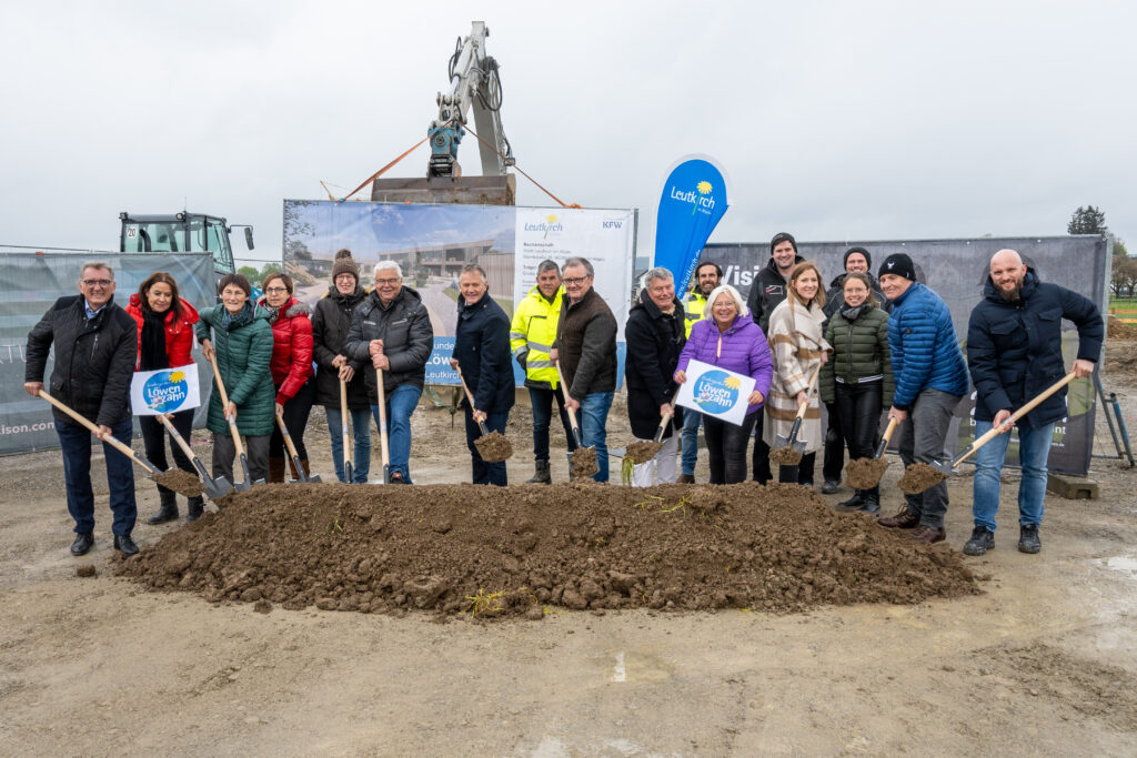 Leutkirch – Am Freitag (19.4.) ist der erste Spatenstich für den Bau des städtischen Kindergartens „Löwenzahn“ im Ströhlerweg erfolgt. OB Henle und viele Projektbeteiligte griffen zum Spaten. Mit vier Gruppenräumen für Kinder im Kindergartenalter und einem Gruppenraum für Kinder unter drei Jahren sowie weiteren Räumlichkeiten wie beispielsweise einem Bewegungsraum, einem Schlafraum und einem Essensbereich, ist der Kindergarten ein echtes Großprojekt. Ab Anfang Mai werden dann bereits – als Zwischenlösung – in den Räumlichkeiten des früheren Standorts des Kindergartens St. Martin in Adrazhofen die ersten Kinder eingewöhnt und der Betrieb des neuen städtischen Kindergartens begonnen.