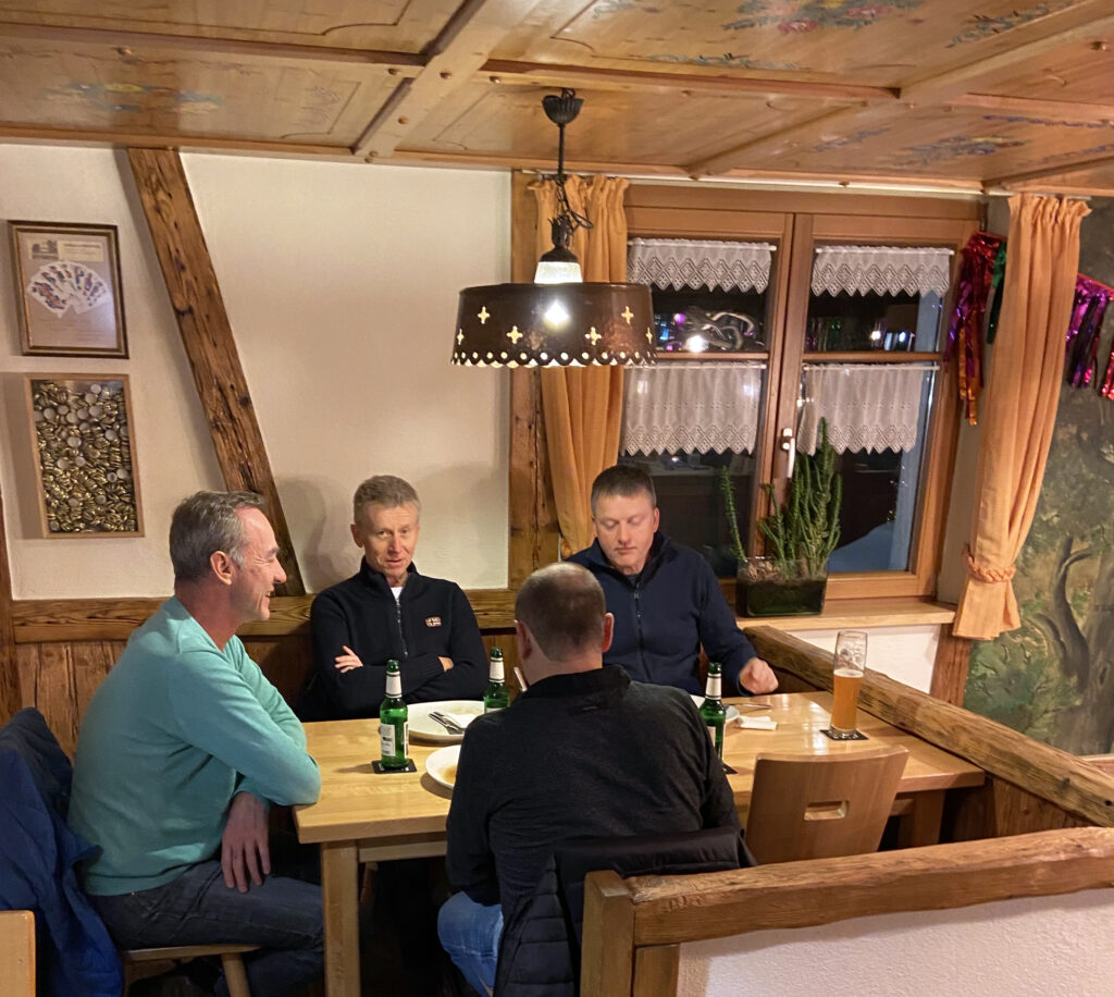 Herzhaft deutsche Küche. Aber originell und vielseitig. Dieser Rezeptur folgen die „Obere-Mühle“-Wirtsleute auch bei Getränken. Neben Wasser und Säften gießen sie auch alkoholfreien Weizen und leichte Weizen ein. Wer lieber ein paar Prozente im Glas genießt, kann zwischen Bieren der alten Hausbrauerei Meckatzer wählen, aber auch Schäffler-Biere bestellen. Und Kristallweizen von Farny. Neuerdings auch Härle-„Landzüngle“.