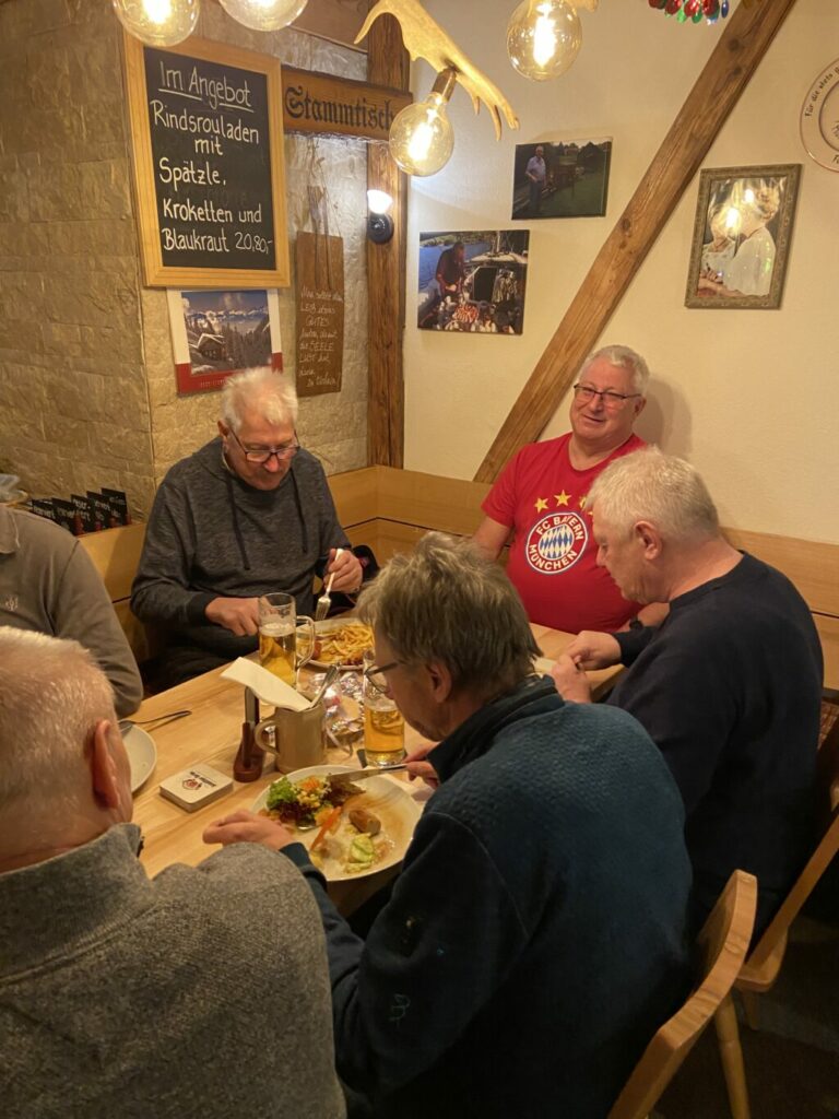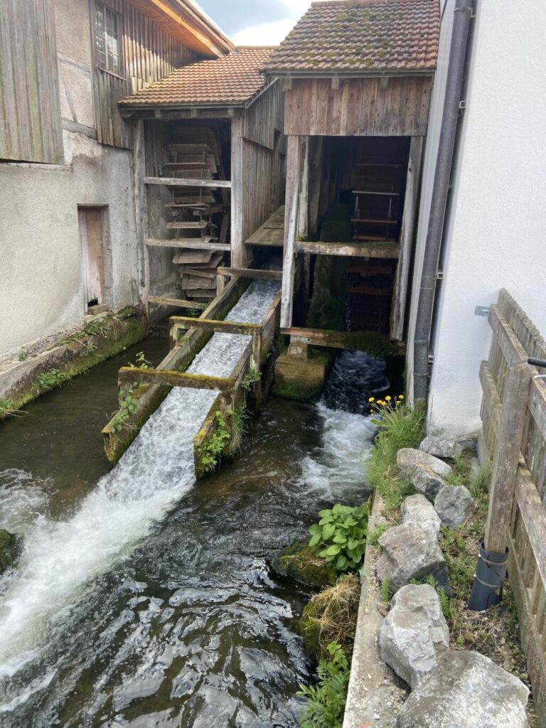 Ausnang – Essen und Trinken in einer ehemaligen Kornmühle. Mit Blick durch eine stabile Glaswand aufs sich drehende Wasserrad nebenan. Mit hauseigenen, selbstgehobelten Spätzle. Das alles – und noch viel mehr – bietet das Gasthaus „Obere Mühle“ in Ausnang. 1973 eröffnet, wird das „urige“ Lokal seit Herbst 2023 von Diana und Ralph Busanny betrieben. In den Gläsern: Biere von vier Brauereien. Mit einer alten Schulbank neben dem Eingang gilt die „Obere Mühle“ als besonders kinderfreundlich – vor allem, wenn sie im Sommer auch noch ihren Garten direkt neben dem offenen Mühlkanal öffnet.