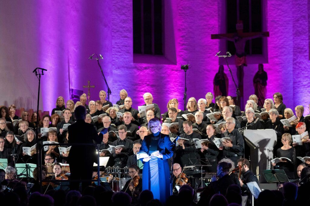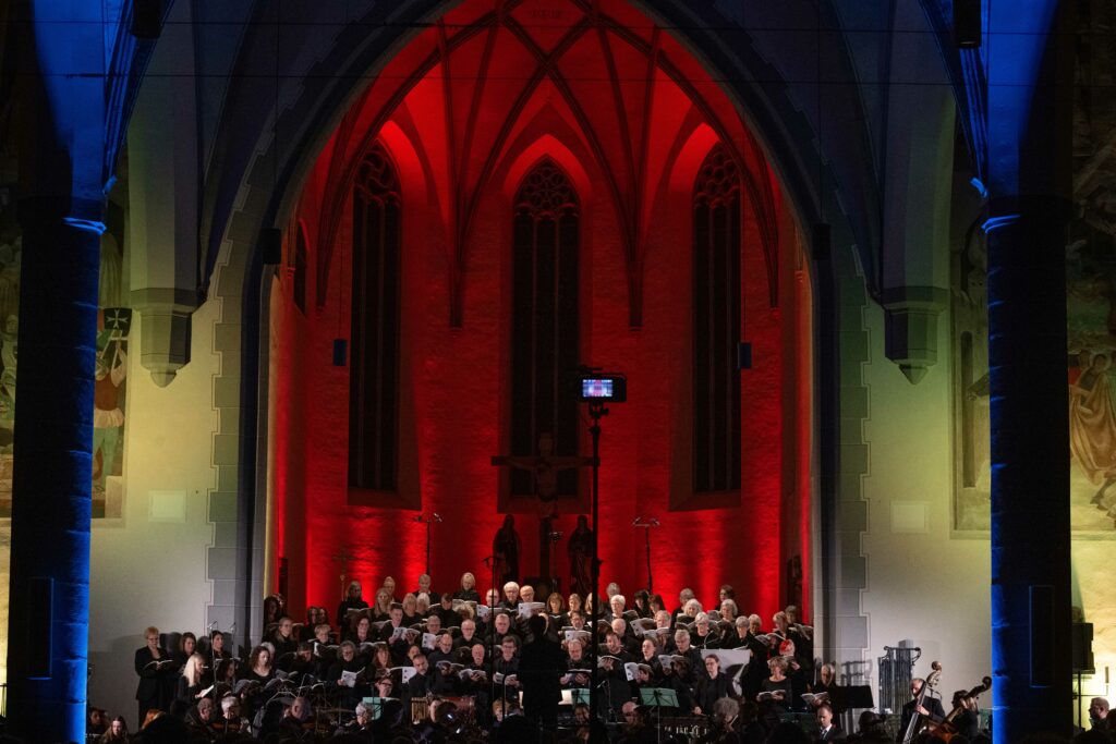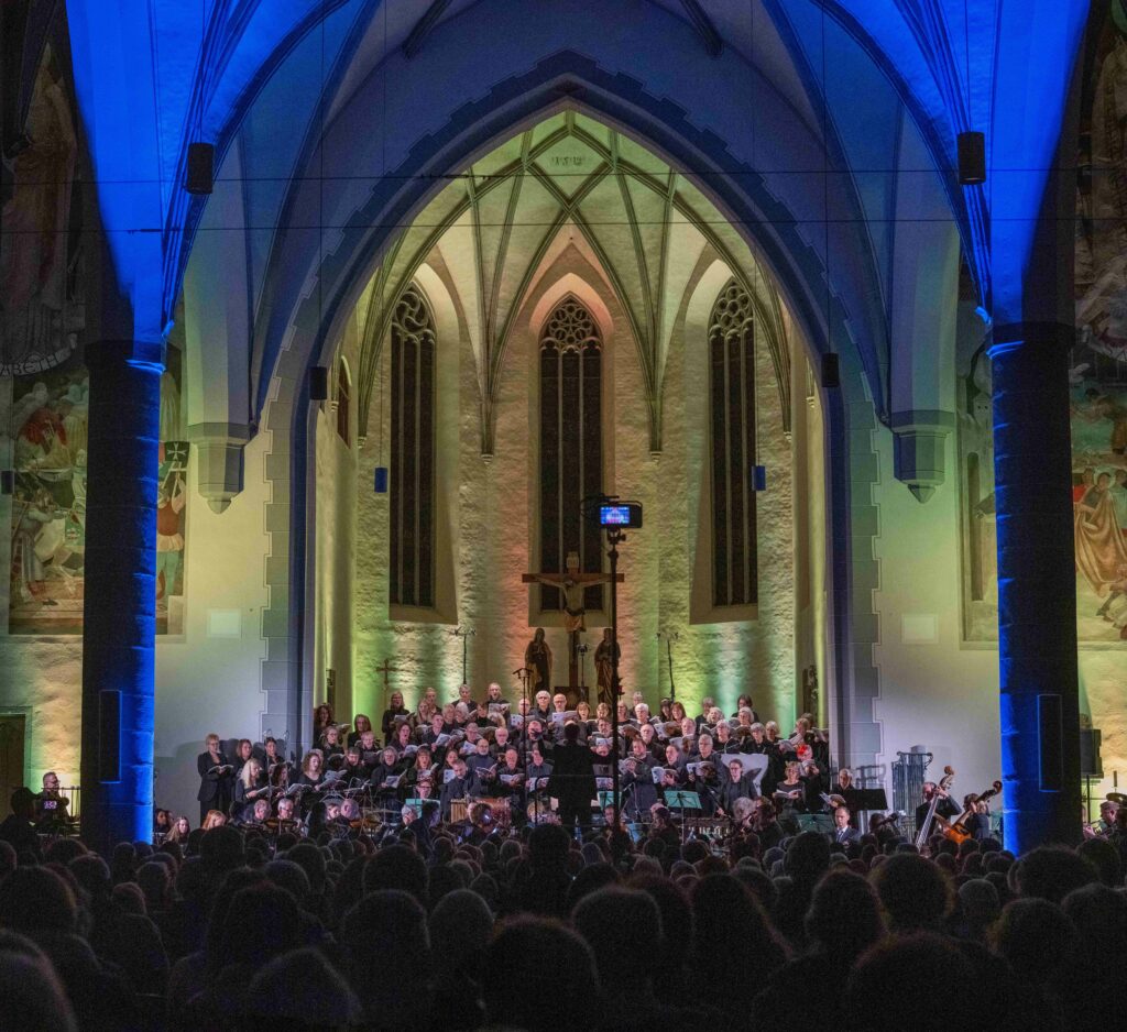 Am Ende gab es Standing Ovations. Für die betörenden Stimmungen, für das Orchester, die Bläser, Streicher und die Solisten, für den riesigen Chor, der „forte“ konnte, aber durchaus auch „piano“, für die jugendlichen Frauenstimmen, für den Gesamtleiter und Kirchenmusikdirektor Franz Günthner, aber auch für die passenden Worte, die der Schriftsteller Imre Török zum Thema Frieden gefunden hat. Die Martinskirche war gefüllt, der Kirchenraum in wunderbares Licht getaucht und die Zuhörer vom ersten Moment an gefesselt. Der Friede wurde im Jenkins-Werk in 21 Sprachen vertont, erfleht und immer wieder herbeigesungen. Nicht nur die Zuhörer, sondern alle Mitwirkenden waren am Ende ergriffen. Tosender Applaus für perfekten Klang und eine grandiose Gesamtleistung.
