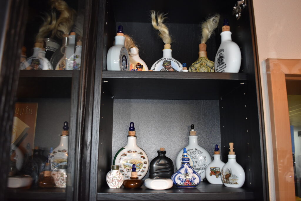 „Schnupfen isch a ganz bsondres Erlebnis. Es macht die Nase und den Kopf freier und duat oifach guad“, sagt der gebürtige Immenstädter, der in Weitnau aufgewachsen ist und dort später als Zimmerer gearbeitet hat. Mit großer Begeisterung zeigt er seinen kleinen Schatz: Einen Schrank mit allerhand Schnupftabak-Behältnissen, darunter echte Kostbarkeiten für Sammler. Die älteste Dose ist gut 120 Jahre alt, aber auch Vor- und Nachkriegsmodelle finden sich viele. Sogar eine kleine Glasflasche aus China ist dabei, auch geschnitzte Holzdöschen, Fläschchen aus ganz Deutschland mit Sammlerwert.