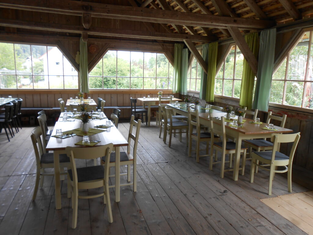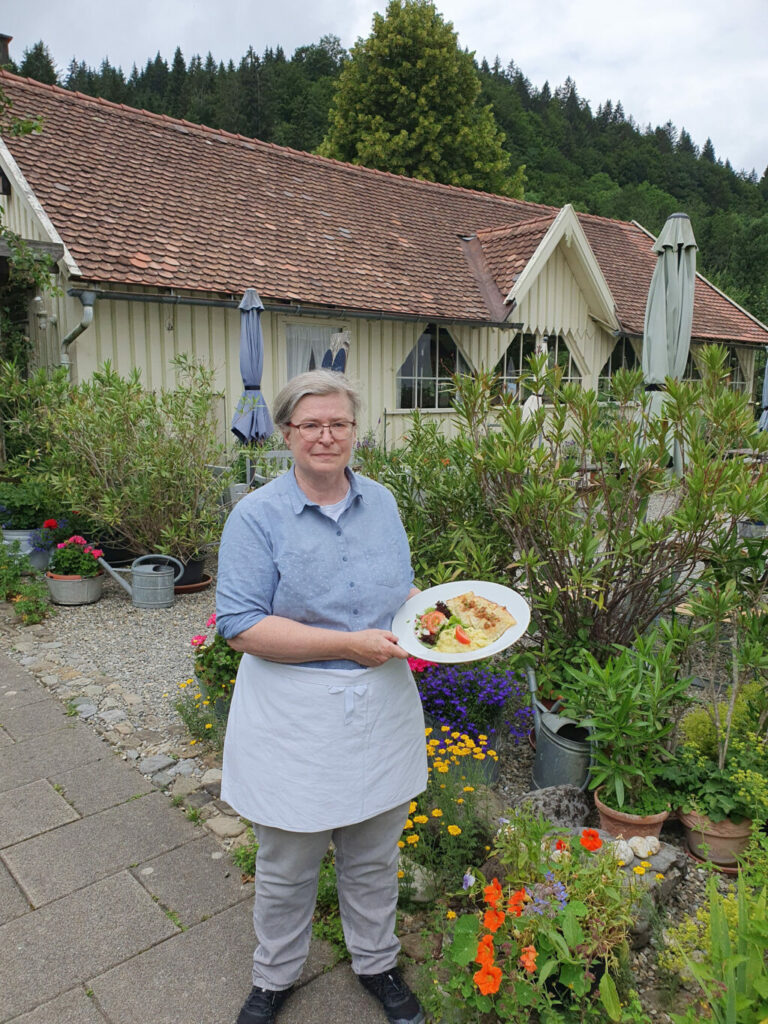 Und dies, obwohl im „Haus Tanne“ auch sonst noch viel anderes handgemacht auf die Teller kommt. Wie zum Beispiel Kuchen – „ohne Chemie, ohne Konservierungsstoffe“. Saisonal – je nachdem, was an Früchten gerade anfällt.  Damit nicht genug, legt die Wirtin auch bei den Getränken Wert auf Bodenständigkeit. Das Bier bezieht sie von der Brauerei Härle in Leutirch. Aber nicht wenige ihrer Gäste seien ganz verrückt nach „Haus-Tanne“-eigenem Zitronenmelissensprudel oder Hollundersprudel.  Ab Herbst freuen sich dann viele am Kreuzthaler Apfelsaft.
