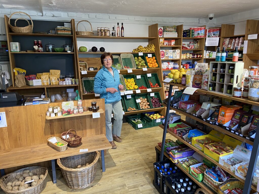 Oder auch am Obstler aus dem Kreuzthal. Der lässt sich im Kaufladen direkt neben dem zentralen „Haus Tanne“ in der zugehörigen Remise erwerben. Ein kleines, aber feines Geschäft, das durch vielfältige Angebote und eine klare Struktur auffällt. Darunter viel Bio und nicht wenig direkt aus der Adelegg. Betrieben vom Adelegg Verein e.V. – für die Bevölkerung.