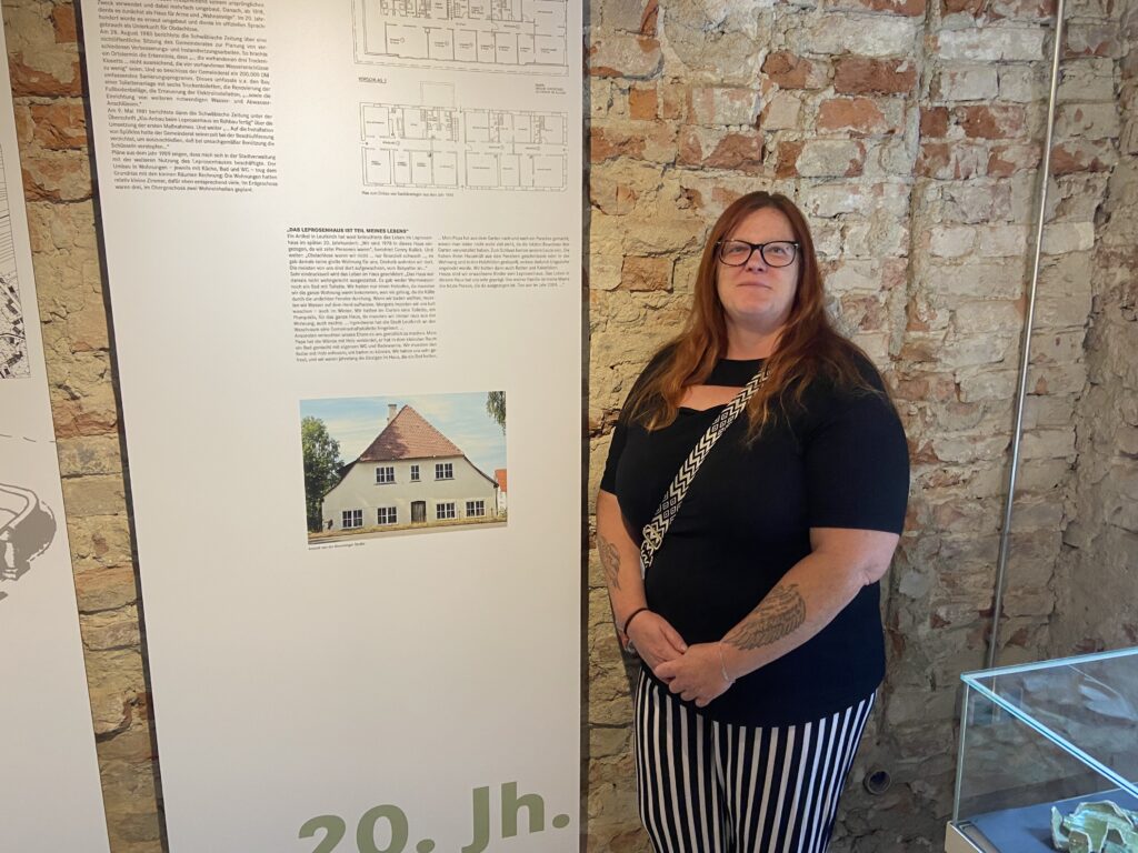 Conny Kullick (Bild), ist im Leprosenhaus aufgewachsen, als es längst kein Haus mehr für Aussätzige war. Mit drei Schwestern in einem Schafraum. Ihre vier Brüder hatten ebenfalls ein Schlafzimmer zusammen. Kullick (geb. 1972) neigt den Kopf zu einer tiefen Tür in der Wand. „Da geht’s zum Keller“. Metall-Ringe an der Wand dort unten ließen vermuten, dass dort manche der damals unheilbar Kranken angekettet gewesen seien, erzählt Conny Kullick. Später, nach 1800, habe das Gebäude als Armenhaus gedient – bis 2004. Wer aufs Klo musste, habe dazu noch jahrelang ein Plumpsklo außerhalb der Mauern nutzen müssen. Auch im Winter. Ihr Vater, ein Gipser, habe dann ein Bad mit Toilette eingebaut.