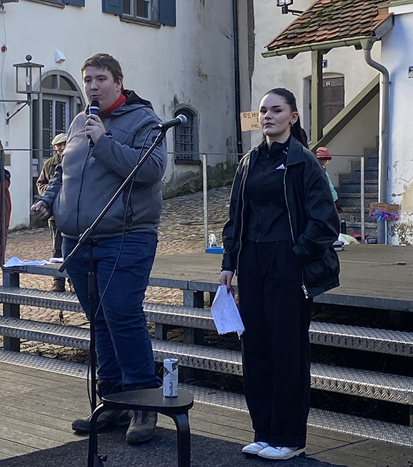 Luis Kistler und Melissa Altergott vom Jugendgemeinderat Leutkirch am 27. Januar bei der „Demo gegen Rechts“ in Leutkirch.