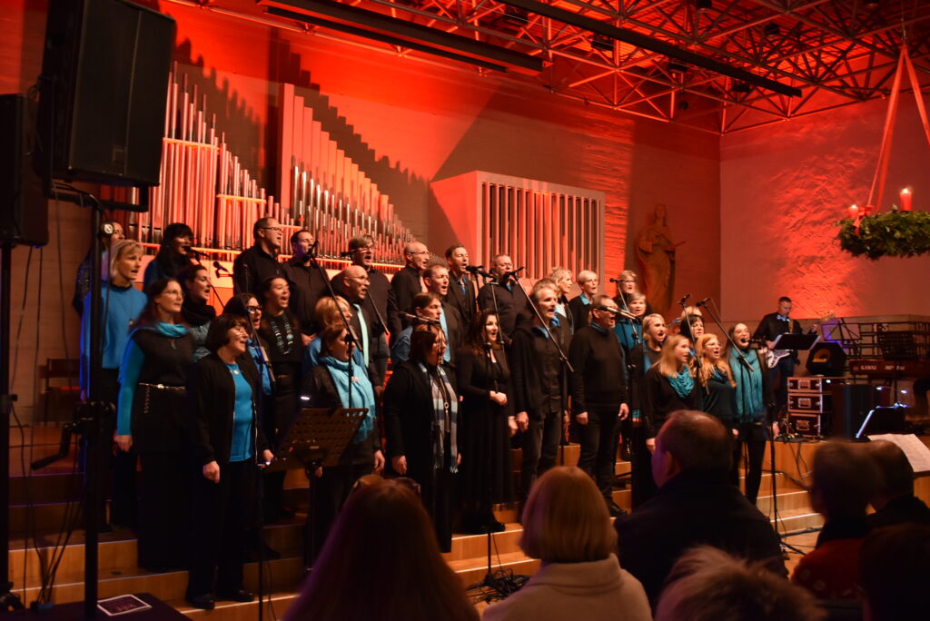 „Halleluja“ ertönte laut und bestimmt, der Gospelchor Aitrach als „Medium voller Lebensfreude“ zog alle Register seiner großen Kunst; 35 Stimmem verzauberten auch ohne Band-Begleitung die Gäste und zogen sie in den Bann der geheimnisvollen „Heiligen Zeit“, die bald ganz nahe ist. Das Wichtigste an diesem Konzertabend war nicht der lange Beifall, sondern die Dringlichkeit der Spenden, die nach Abzug der Nebenkosten in das Projekt „Familien in Not“ des Landes Baden-Württemberg beziehungsweise der Evangelischen Kirchengemeinde Leutkirch–Aichstetten fließen werden. „Es gibt hier in der Region Menschen in Not, Familien, die sich keine Geschenke leisten können, Obdachlose, die froh an einem Lebensmittel-Gutschein sind, dafür singen wir, dafür sollten Sie spenden“, hieß es eindrücklich.