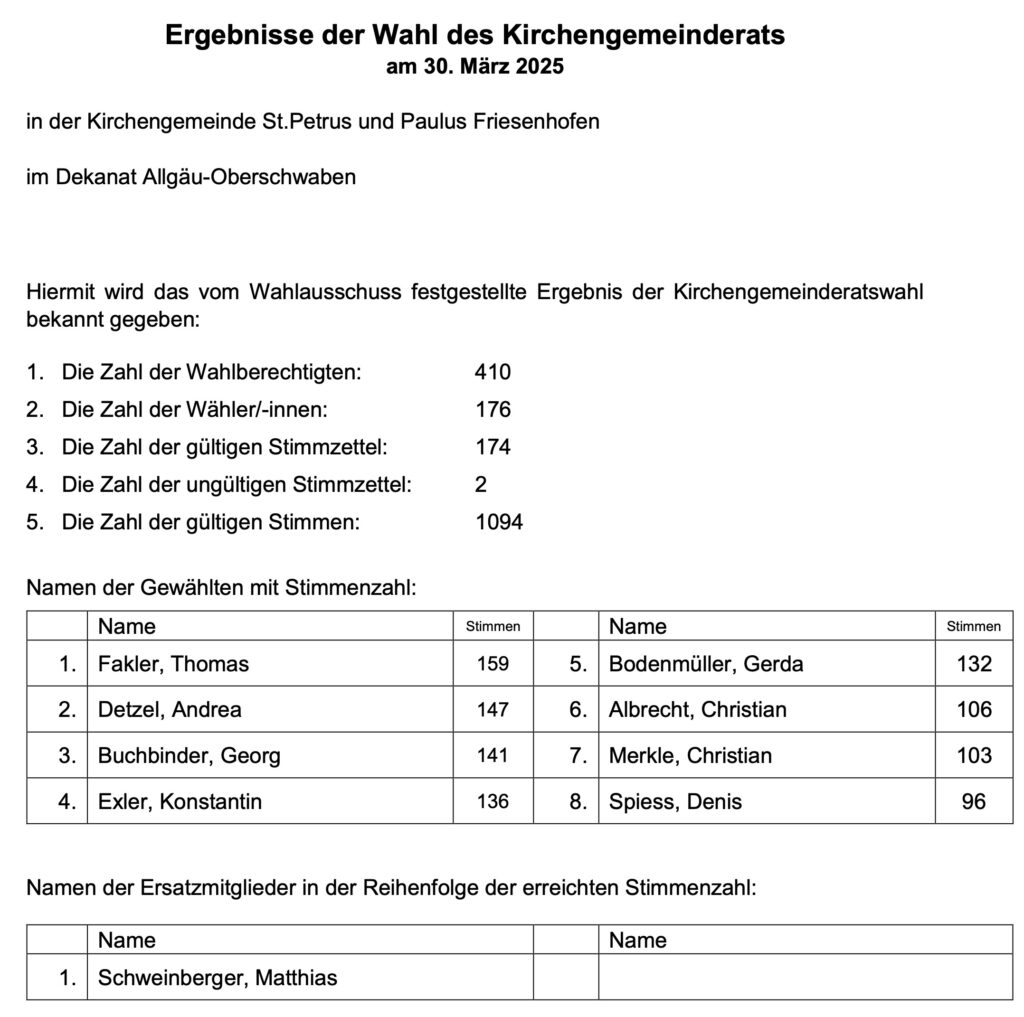 In Friesenhofen gingen 42,9 Prozent der 410 Wahlberechtigten zur Wahl. Das beste Ergebnis hatte Thomas Fakler.